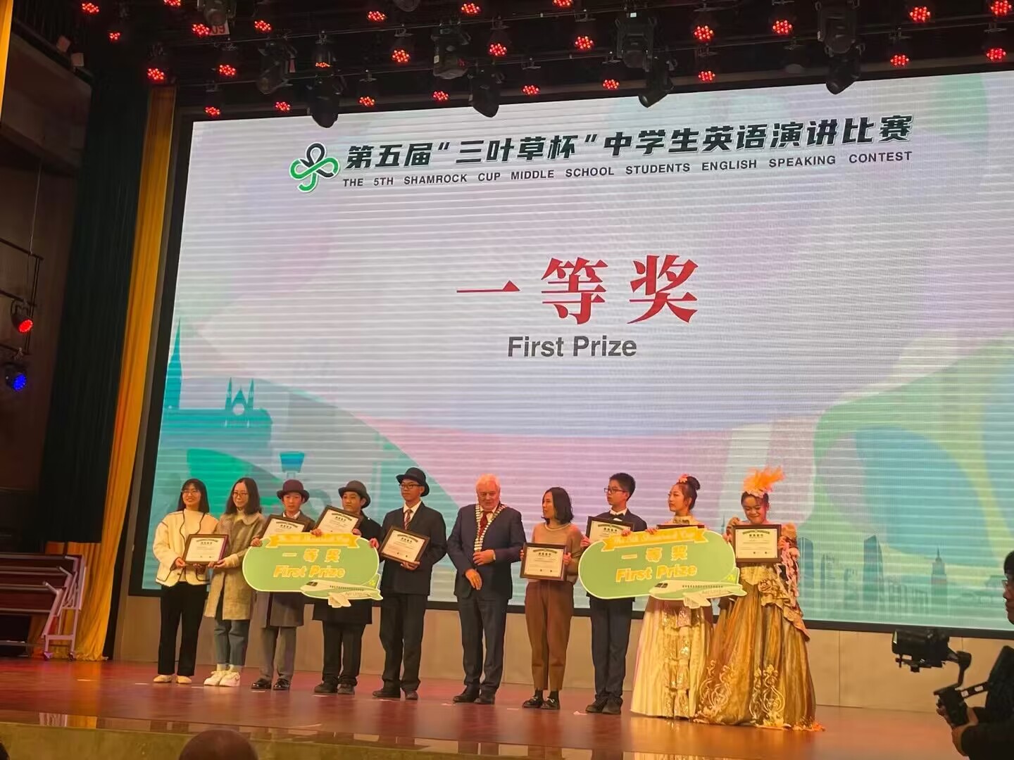 比賽結(jié)束,科克郡郡長弗朗西斯·奧弗林和其他評委老師們分別從不同的角度對各隊的表現(xiàn)進行點評和指導(dǎo)。此次活動讓我們班的同學(xué)發(fā)現(xiàn)了學(xué)習(xí)英語是一項技能,一種新鮮事的探究,而非是痛苦的源泉,這極好地點燃大家對英語學(xué)習(xí)的熱情。而我也可以說是收獲頗豐,我又一次深化了對英語的認識,也明白了英語學(xué)習(xí)也有如此有趣的方式。演出藝術(shù)和英語學(xué)科碰撞出的火花絢爛不已,那就讓我們攜手共進,奔赴“This is a cake”的英語世界吧!