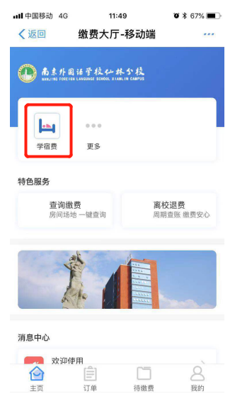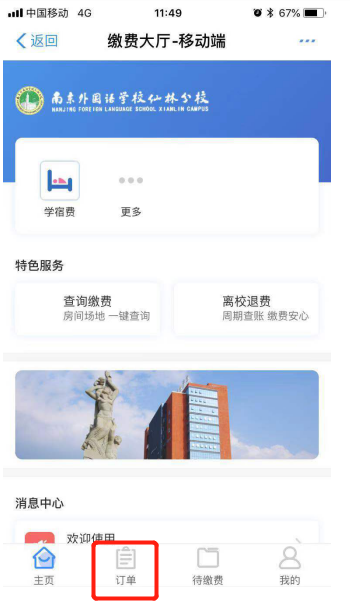 5、繳費完成后可以在主頁如圖1-7中點擊“訂單”按鈕,查詢繳費訂單如圖1-8