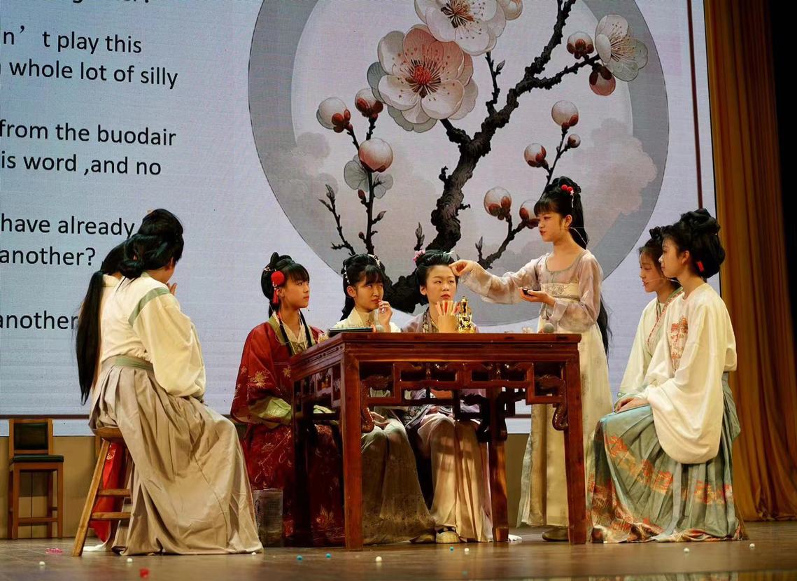蘇軾有言:“舊書不厭百回讀,熟讀深思子自知?!碧K聯(lián)教育家蘇霍姆林斯基也曾說過:“我們力求使每一個(gè)少年、每一個(gè)青年都找到他們自己的書,這本書應(yīng)當(dāng)在他的心靈里留下終身不可磨滅的痕跡?!币槐窘?jīng)典好書,會(huì)深刻的影響學(xué)生的個(gè)性發(fā)展,甚至決定他今后的人生之路。而那些名留史冊的經(jīng)典著作就是這樣的被時(shí)間“偏愛”的好書。在這種教育理念的支持下,南外仙林中學(xué)部八年級(jí)于3月19日舉辦了以“致敬經(jīng)典”(Ode to the Classics)為主題的經(jīng)典著作課本劇匯演。小小的舞臺(tái)上,同學(xué)們的稚嫩的演繹和中外經(jīng)典文學(xué)作品厚重的底蘊(yùn)相結(jié)合,迸發(fā)出不一樣的火花。