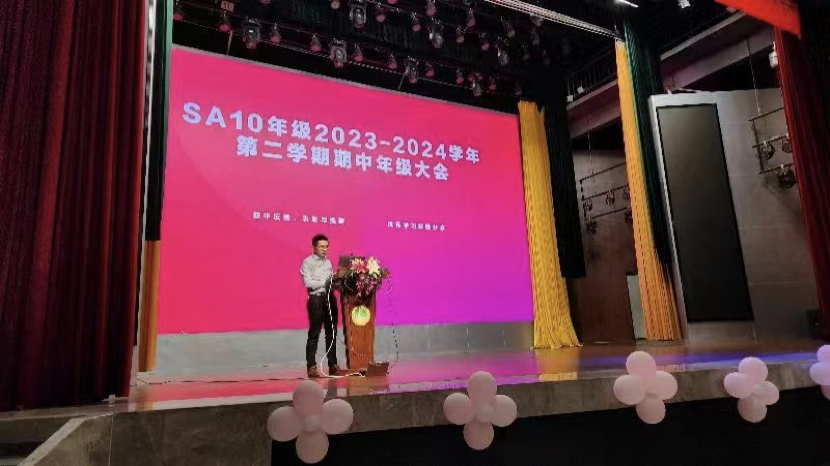 不僅從學習表現上表彰了優(yōu)秀學生,還從班級管理、活動參與、遵規(guī)守紀等多個角度進行了表彰。學生代表臧桐垚同學分享了優(yōu)秀學習經驗,這為其他學生提供了寶貴的參考。同時,年級組提供下學期AP物理1、AP化學、普通心理學、藝術設計類等課程的選課方案解讀,還詳細講解了SAT、ACT、藝術類考試的類型和備考策略,為學生們的學術發(fā)展提供了的指導。各班級家長會介紹了本班級的學習和常規(guī)情況,外方教師也進行了學科學習情況的介紹與提醒,使得家長更加了解學生的學習情況。
