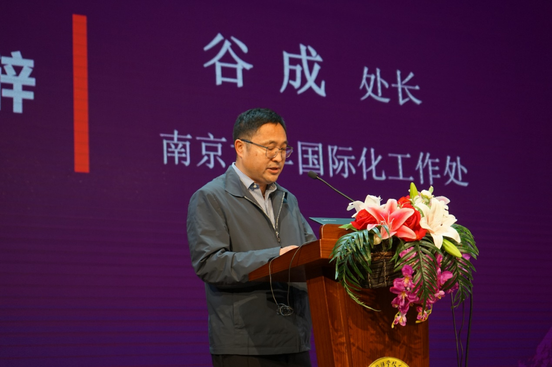 南京大學(xué)國(guó)際化工作處處長(zhǎng)谷成教授首先致辭,他寄語(yǔ)即將出國(guó)留學(xué)的師生們:有效利用世界先進(jìn)資源,弘揚(yáng)學(xué)以報(bào)國(guó)的傳統(tǒng),心有大我,為實(shí)現(xiàn)偉大的中國(guó)夢(mèng)做出自己的貢獻(xiàn),并叮嚀大家在異國(guó)他鄉(xiāng),不同的法律法規(guī)和風(fēng)俗環(huán)境下,要保護(hù)好自身權(quán)益和安全。