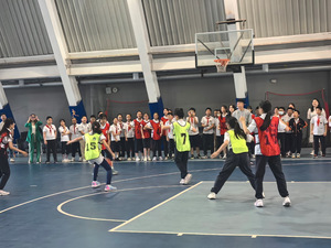 一個(gè)眼神,一個(gè)傳遞,是同學(xué)們默契的配合;迅捷運(yùn)球,精準(zhǔn)搶斷,是同學(xué)們揮灑汗水的成果。場(chǎng)上的同學(xué)各個(gè)緊扣球面運(yùn)籌帷幄,跳躍、投籃一氣呵成。球場(chǎng)上,各班籃球健將本著友誼第一、比賽第二的原則相互切磋。一次次的突破自我,比賽現(xiàn)場(chǎng)熱血沸騰!