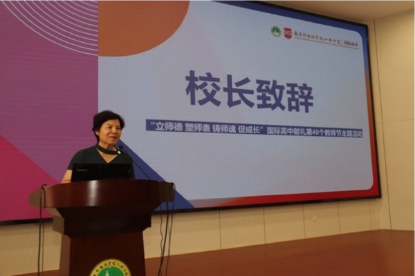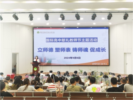 金秋九月,新學期伊始,南外仙林國際高中獻禮第40個教師節(jié),舉辦了一系列的主題相關活動。今年教師節(jié)的主題是:“大力弘揚教育家精神,加快建設教育強國”。9月6日,在四百人階梯教室,國際高中舉行了以“立師德、塑師表、鑄師魂、促成長”為主題的全體教職工大會。