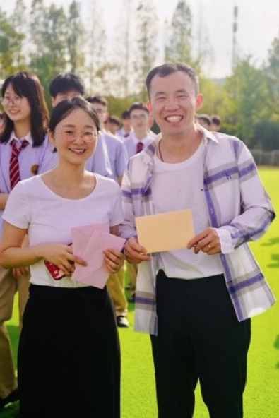 9月9日清晨,學部戶外主題升旗儀式上,主持人將教師節(jié)的祝福送給每一位國高教師。來自中美項目12B的張博睿同學代表全體同學向辛勤耕耘在教育一線的老師們致以了最崇高的敬意和最溫馨的祝福。他說道,這些卡片不僅凝聚了我們對老師辛勤耕耘的深深謝意,更是創(chuàng)意與情感的完美融合。每一道精心折疊的棱角,每一抹細心挑選的色彩,都承載著我們對老師無私奉獻的崇高敬意和溫暖祝福。此外,全體同學攜手精心籌備了一份特別的禮物——一張滿載心意的立體賀卡,由每位班級的學生代表親手呈遞給敬愛的老師們。