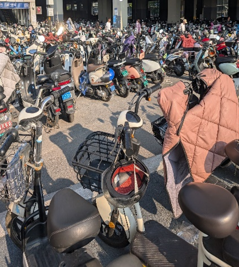 Needless to say, based on the picture to the left, motorcycles/e-bikes are the most common form of transport. However, Nanjing boasts a vast network of metro lines, high-speed rail, public bicycles, buses, and even cable cars up Purple Mountain.