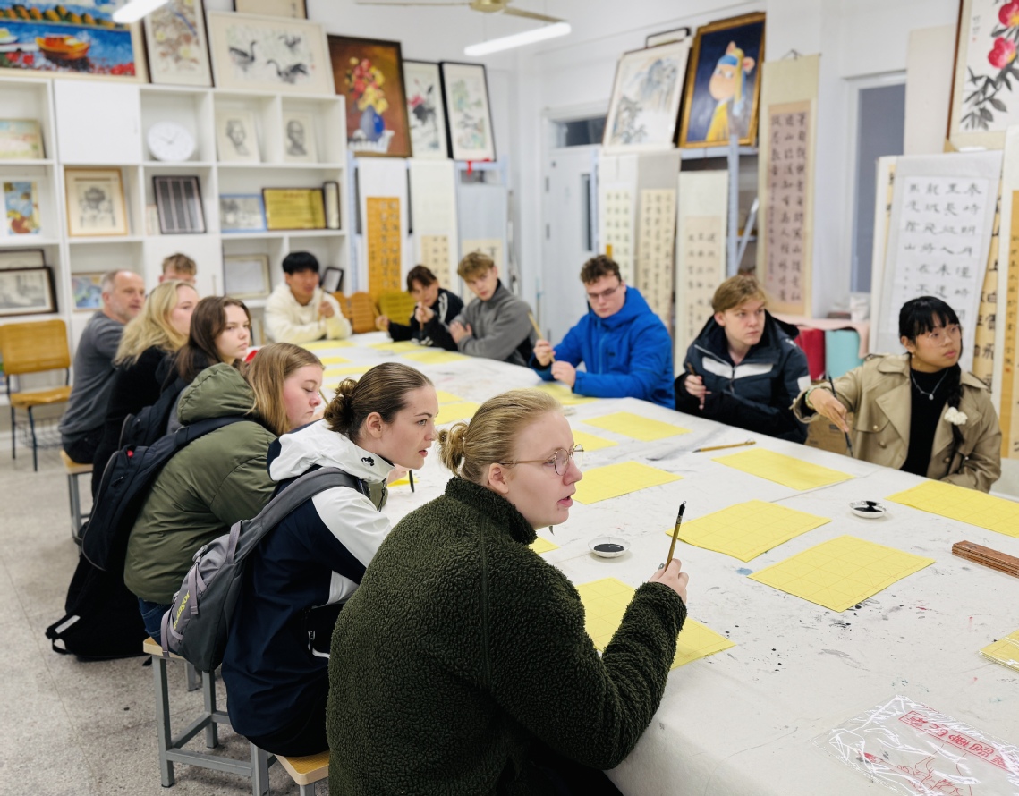 此次交流活動自12月2日至7日,為期六天的訪問期間,我校精心安排了一系列豐富多彩的傳統(tǒng)中國文化課程,包括剪紙、書法、國畫、太極和茶藝等。通過這些課程,丹麥的師生對中國的傳統(tǒng)文化有了更深入的了解,同時也增進了他們對中國的感情。