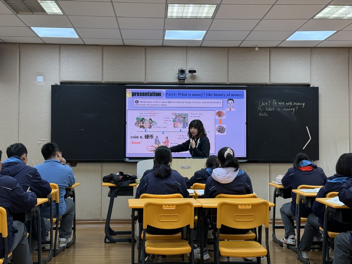 授課教師們緊扣話題,教學(xué)方式新穎靈活。開篇拋出“日常零花錢去向”話題,瞬間點(diǎn)燃學(xué)生興趣,引得大家踴躍分享。接著,借多媒體短視頻直觀展示貨幣演變史,引導(dǎo)學(xué)生關(guān)注圖片和時(shí)間軸展現(xiàn)的貨幣展覽為話題的聽力活動(dòng),再結(jié)合趣味課堂討論,讓學(xué)生討論自己的lucky money的獲取方式和消費(fèi)方式,并模擬消費(fèi)沉浸式學(xué)習(xí),輕松掌握核心句型與詞匯,課堂活力滿滿。師生、生生互動(dòng)環(huán)節(jié)亮點(diǎn)突出。例如:湯老師的小組討論“Can e-money totally replace paper money in our daily life?”時(shí),同學(xué)們思維碰撞,提出不少新穎觀點(diǎn);匯報(bào)展示環(huán)節(jié),各小組英語(yǔ)流利、條理清晰,臺(tái)下同學(xué)積極提問(wèn)點(diǎn)評(píng),鍛煉表達(dá)同時(shí),還樹立正確消費(fèi)觀,這遠(yuǎn)超語(yǔ)言學(xué)習(xí)范疇。
