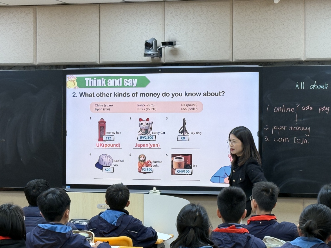 在講解詞匯和句型時(shí),教師不忘穿插相關(guān)的文化背景知識(shí),幫助學(xué)生更好地理解語(yǔ)言的深層次含義。比如張老師補(bǔ)充了各國(guó)使用的不同的錢幣種類。這種跨文化的教學(xué)內(nèi)容不僅拓寬了學(xué)生的國(guó)際視野,也增強(qiáng)了他們對(duì)英語(yǔ)學(xué)習(xí)的興趣和動(dòng)力。