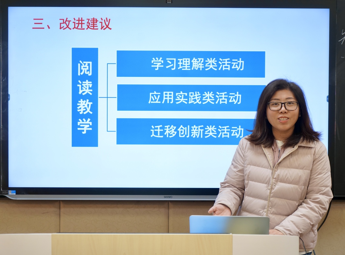 之后,南師附中教研組長趙潔老師對兩節(jié)課作了充分的點(diǎn)評,并給與高度的評價(jià)。同時(shí),結(jié)合自己的教學(xué)經(jīng)驗(yàn)和理念,她對“The wonder of literature”這一語篇進(jìn)行了深入的解讀。趙老師指出,如何讓學(xué)生真正的理解和領(lǐng)悟文學(xué)的Wonder是本節(jié)課的重點(diǎn),這意味著教師要不斷的啟發(fā)、帶領(lǐng)學(xué)生發(fā)現(xiàn)文學(xué)中的surprises,感受文學(xué)作品帶來的pleasure,激發(fā)學(xué)生對文學(xué)作品的“admiration”。同時(shí)也要引導(dǎo)學(xué)生關(guān)注作品的主題意義、寫作風(fēng)格,思考作者的創(chuàng)作意圖,從而提升學(xué)生的文學(xué)閱讀素養(yǎng)和批判性思維能力。