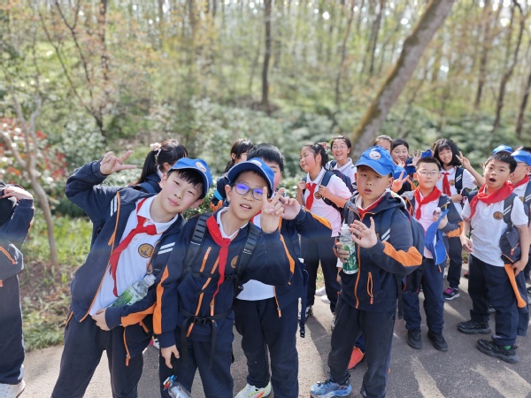 植樹時分,鐵鍬翻動春泥的芬芳,同學們將幼苗植入大地,系著校牌的枝椏在風中舒展。當最后一抔土壓實,我們讀懂年輪里深藏的諾言——這趟跋涉,丈量著意志的韌度,也播種著生命的力量。歸途回望,漫山新綠正與云影共舞。