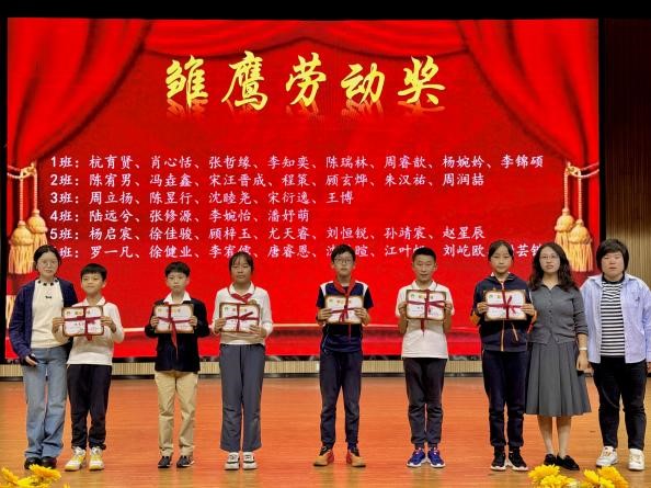 學(xué)生獎項的頒發(fā)根據(jù)各方面的綜合表現(xiàn),評選出了雛鷹悅雅獎、勤學(xué)獎、健體獎、藝術(shù)獎、勞動獎等多個獎項。獲獎學(xué)生依次上臺領(lǐng)獎,他們的臉上洋溢著自豪和喜悅的笑容,臺下師生報以熱烈的掌聲,為他們送上最真摯的祝賀。