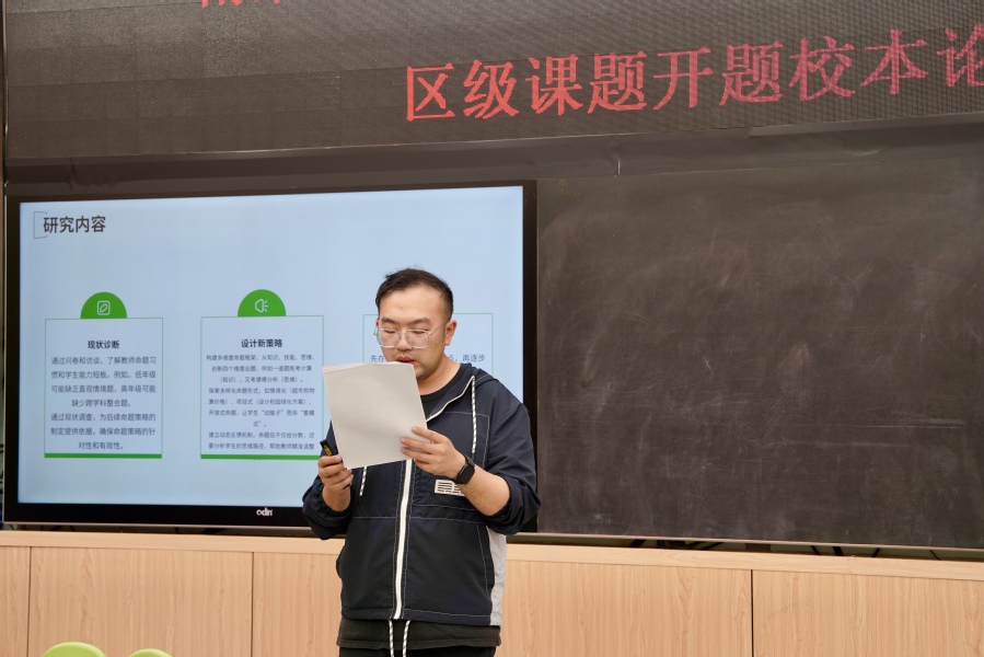 首先各課題組依次展開匯報(bào),仇紅悅、吳丹老師主持的《小學(xué)教師范畫在激發(fā)與引導(dǎo)小學(xué)生美術(shù)創(chuàng)造力中的有效性研究》,深入探討美術(shù)教學(xué)中教師范畫的作用;王者老師主持的《以學(xué)生成長(zhǎng)為導(dǎo)向的美術(shù)課程 “增長(zhǎng)點(diǎn)” 的探索》,聚焦美術(shù)課程新發(fā)展點(diǎn);王正老師主持的《基于教學(xué)評(píng)一體化的小學(xué)數(shù)學(xué)命題策略研究》,圍繞小學(xué)數(shù)學(xué)教學(xué)評(píng)價(jià)與命題展開;張娟、費(fèi)濤老師主持的《體腦融合理念下乒乓球運(yùn)動(dòng)對(duì)小學(xué)生專注力影響的實(shí)證研究》,探究體腦融合運(yùn)動(dòng)對(duì)學(xué)生專注力的影響;程元元、朱穎老師主持的《以提升小學(xué)生音樂核心素養(yǎng)為靶向目標(biāo)的校園藝術(shù)節(jié)課程化教學(xué)實(shí)踐研究》,關(guān)注音樂素養(yǎng)培養(yǎng)與校園藝術(shù)課程。各課題主持人從研究背景、目的、方法到預(yù)期成果等方面,進(jìn)行了全面且細(xì)致的闡述。