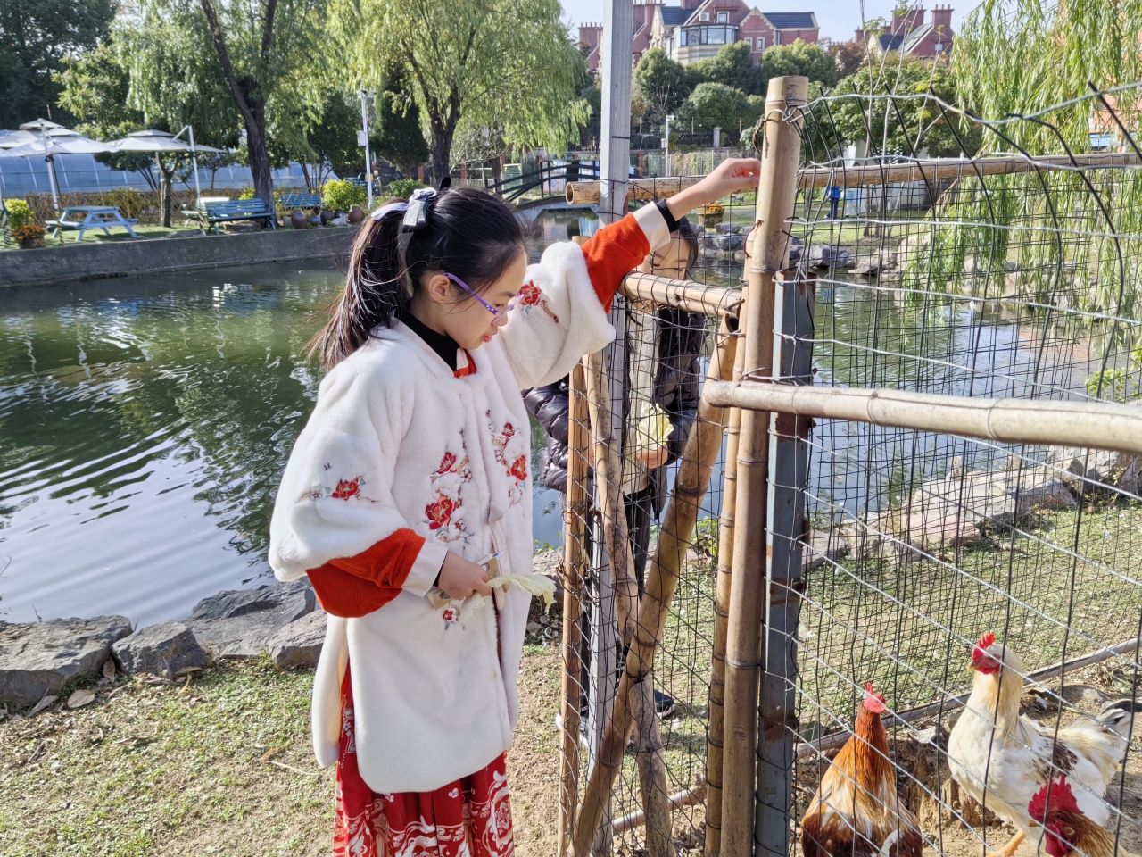 最熱烈的歡呼聲獻給了農(nóng)場“頂流”——憨態(tài)可掬的山羊、搖搖擺擺的母雞,輕輕遞上鮮嫩的草葉,看它們溫順地咀嚼,長睫毛撲閃著好奇。這份零距離的溫情互動,是孩子們此行最甜蜜的饋贈。
