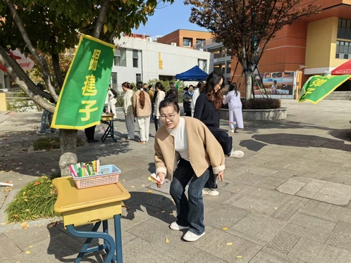 賽場(chǎng)上,跳繩的“呼呼”風(fēng)聲、踢毽子的“噠噠”節(jié)奏與投壺的歡呼聲交織成獨(dú)特的“校園交響曲”:有的老師跳繩如“無(wú)影繩”般飛速甩動(dòng),有的在夾彈子項(xiàng)目里展現(xiàn)“穩(wěn)準(zhǔn)狠”的手眼協(xié)調(diào),投壺區(qū)更是頻頻傳來(lái)“中啦”的雀躍聲,連平時(shí)沉穩(wěn)的班主任們,都在立定跳遠(yuǎn)時(shí)跳出了輕盈的“騰空步”。從講臺(tái)到賽場(chǎng),從教案到跳繩,這場(chǎng)“短平快”的午間運(yùn)動(dòng)會(huì),不僅讓老師們?cè)诿β档慕虒W(xué)間隙舒展了身心,更拉近了同事間的距離。