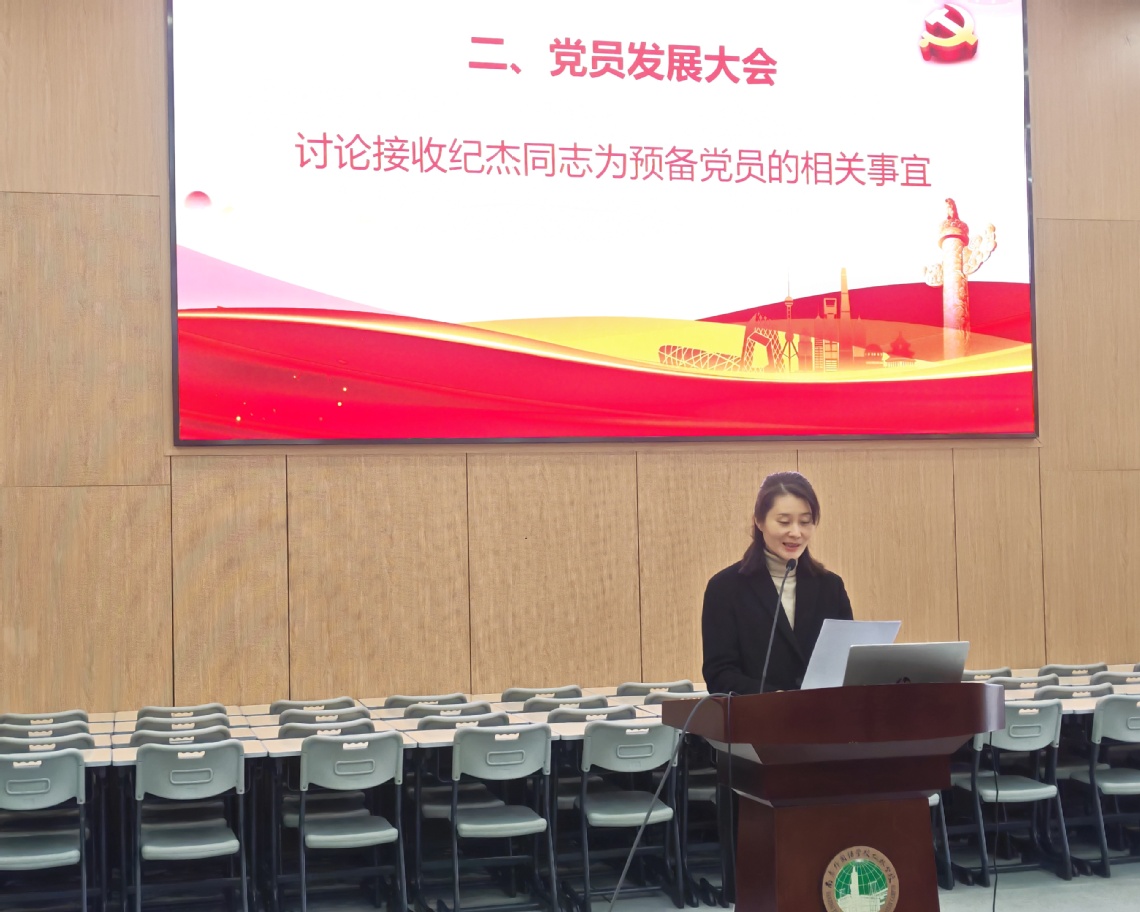 隨后,會議嚴格按照組織程序,舉行了黨員發(fā)展大會。會議對接收紀杰同志為預備黨員的事宜進行了充分討論。紀杰同志認真匯報了對黨的認識、入黨動機及個人情況。其入黨介紹人介紹了培養(yǎng)考察情況,與會黨員紛紛發(fā)表意見。經(jīng)支部大會無記名投票表決,一致同意接收紀杰同志為中共預備黨員。此次發(fā)展工作為黨支部注入了新鮮血液,展現(xiàn)了黨組織持續(xù)的凝聚力與活力。