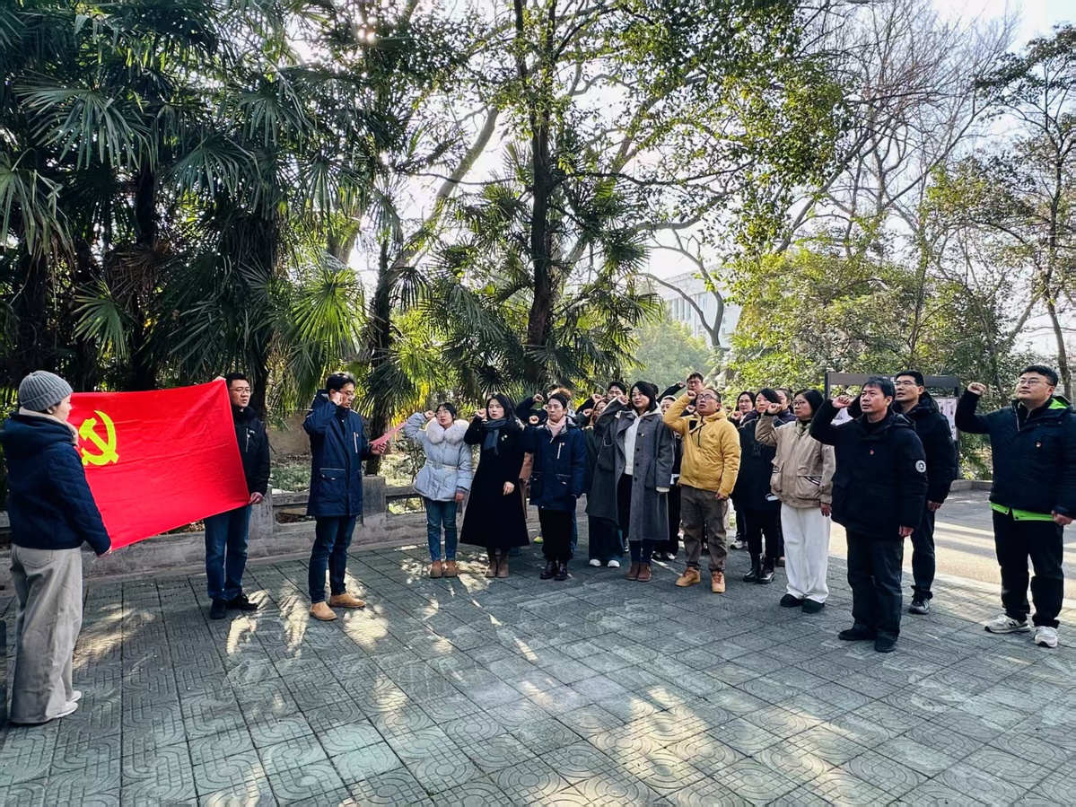 隨后,支部成員瞻仰曉莊英烈紀念碑,并在陶行知墓前重溫入黨誓詞,堅定“為黨育人、為國育才”的信念。