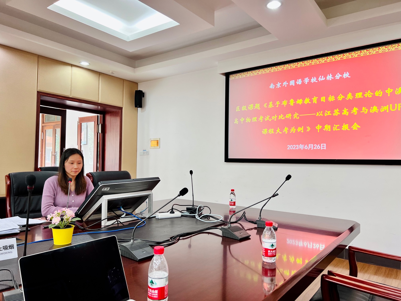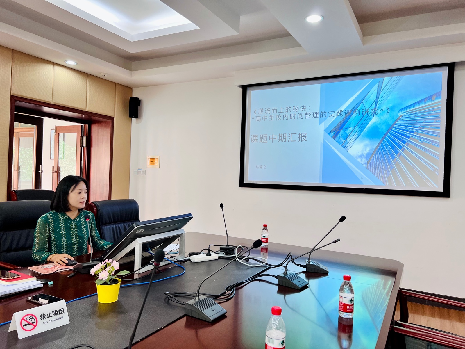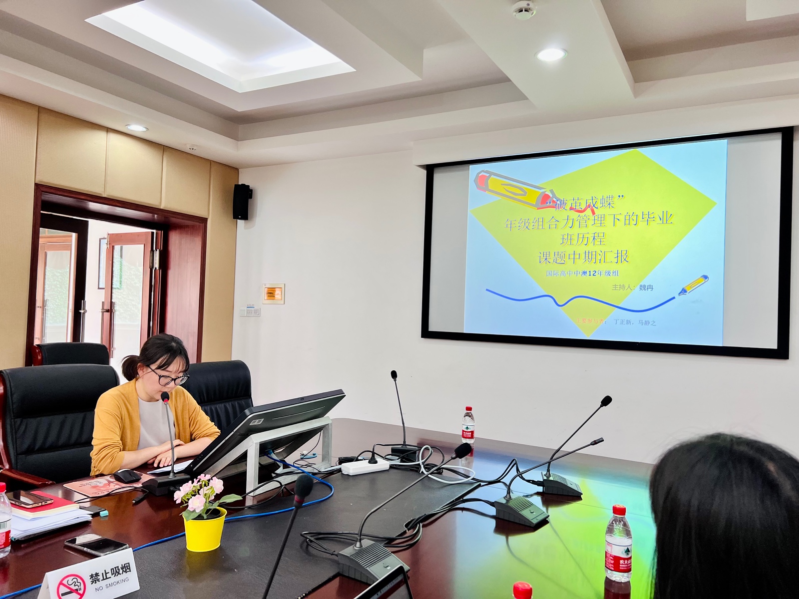 6月26日下午,國際高中在圖書館202會議室成功舉行了市級、區(qū)級、校級課題中級匯報會。該會議旨在展示教師們在各自研究課題中的進展,并為教師們提供一個互相交流、分享、學習的平臺。中期匯報指導組的四位專家:學校副校長、特級教師賀東亮校長,學校副校長、高級教師程彩玲校長,國際高中部主任、高級教師沈一飛主任和國際高中部副主任、高級教師張榮主任,分別對教師們的課題進行了指導。通過中期匯報,教師們得到了來自專家們的反饋和建議,進一步完善了自己的研究方向和方法。