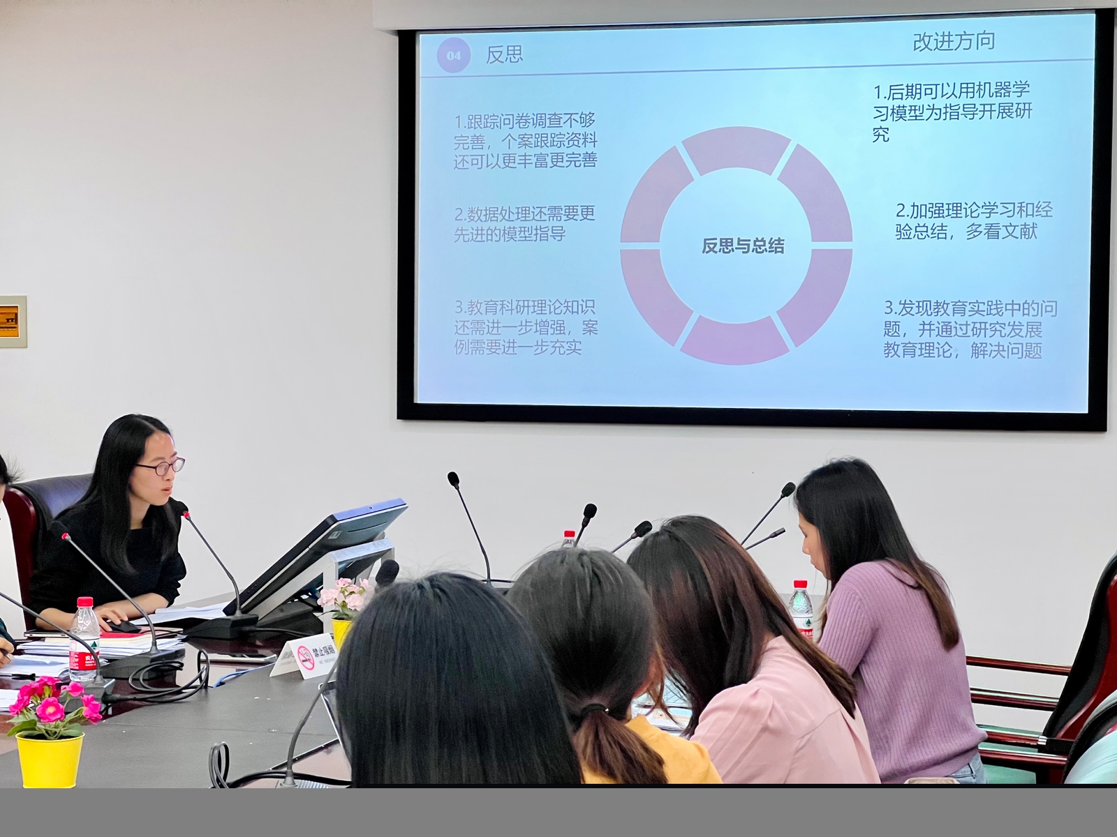 校級課題主持人梁笑、魏冉、馬靜之三位老師也分別闡述了他們現(xiàn)階段的一系列研究成果,如已形成年級組家長會家校共管模版;已通過問卷星網(wǎng)絡(luò)問卷形成可視化表格深入了解學生學科問題;已結(jié)合項目特點制定合理的電子產(chǎn)品管理規(guī)定;已撰寫案例文章等。