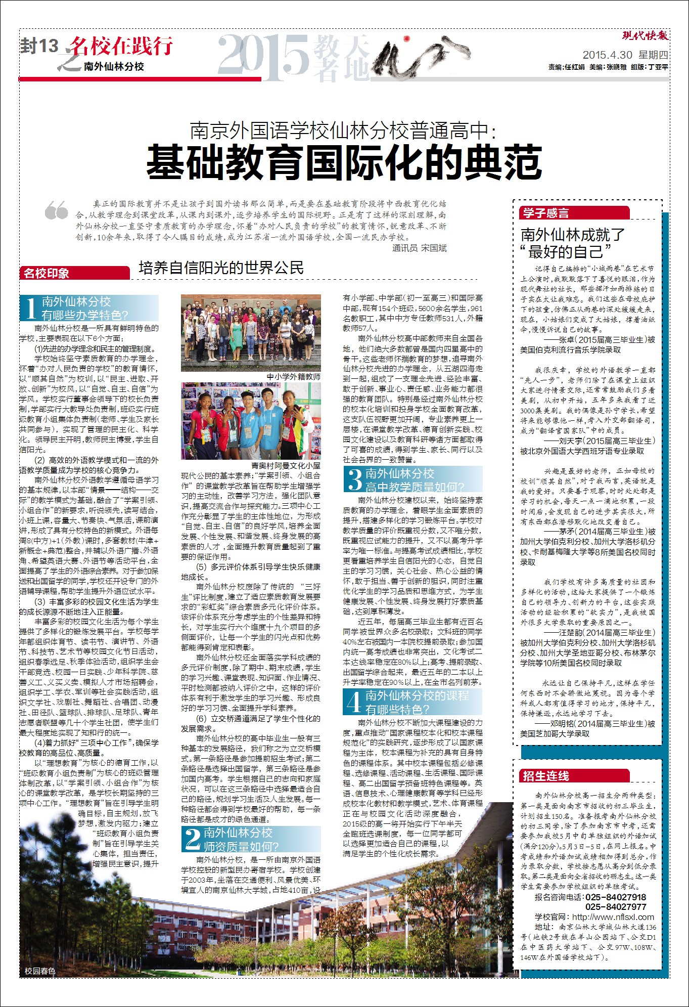 《現(xiàn)代快報(bào)》南外仙林普高:基礎(chǔ)教育國(guó)際化的典范