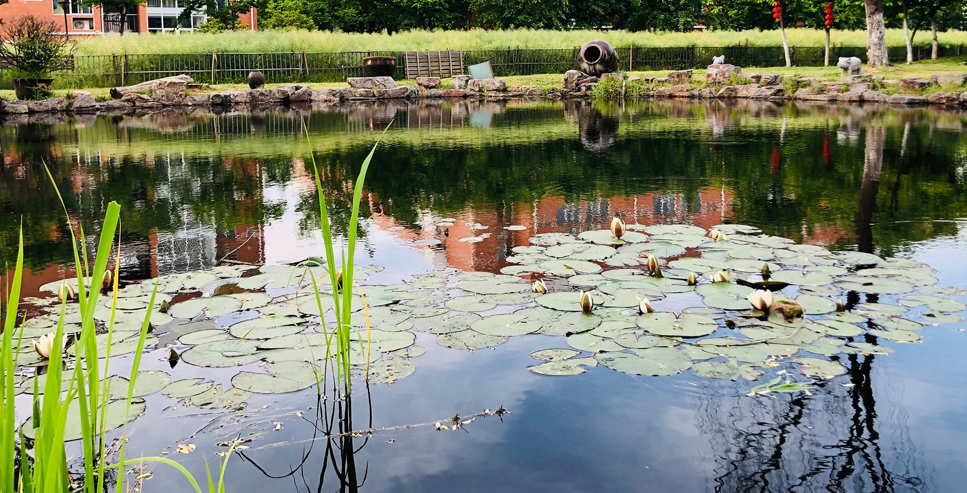 校園農場池塘里的荷花盛開了,一片片荷葉像一個個碧綠的大圓盤。圓盤上晶瑩的露珠滾動著,亭亭玉立的荷花競相開放,散發(fā)出一陣淡淡的清香,清淡美麗,真是令人陶醉。在荷花叢中,偶爾有幾只蜻蜓飛過,停在荷葉上休息;還有幾只蜻蜓用自己細長的尾巴去點水;還有幾只蜻蜓在用優(yōu)美的舞姿吸引周圍的同學。幾條可愛的小魚從荷葉下游過,生怕打破靜謐的畫面,池塘邊那婀娜多姿的垂柳,輕風一拂,可愛極了。