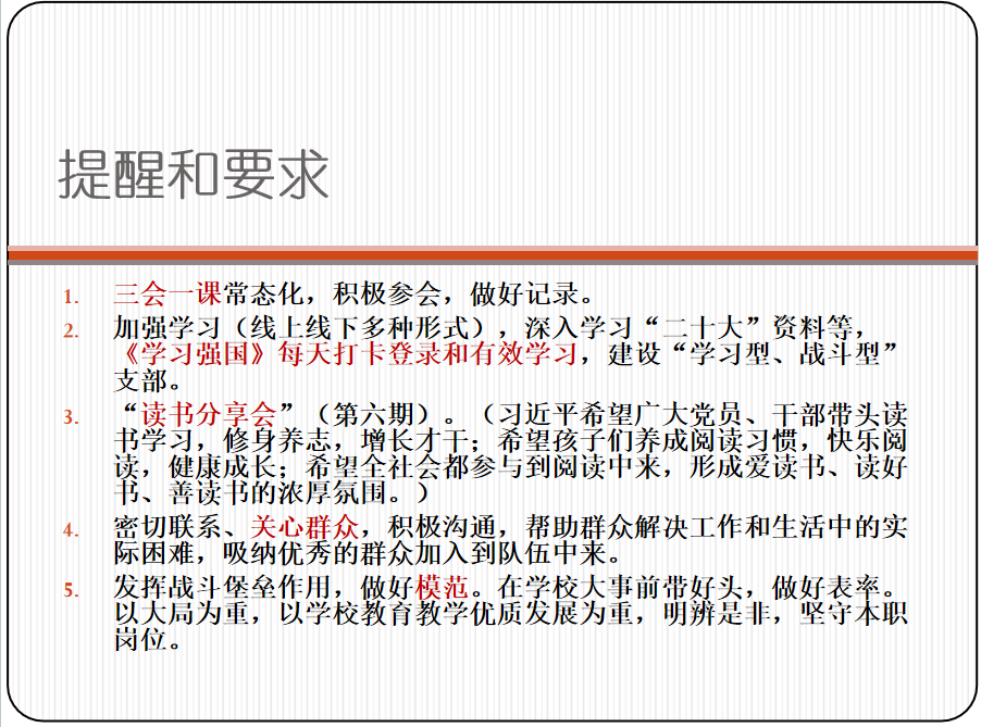 支部書記沈一飛就支部過去一年來的主要工作內(nèi)容、存在問題以及今后工作打算做了扼要、詳細(xì)的說明。同時各位黨員在聽完工作報告后結(jié)合自己的感受,就支部今后的工作方向,從深化理論學(xué)習(xí)、增強黨員聯(lián)系、開拓創(chuàng)新意識等方面提出了意見與建議。