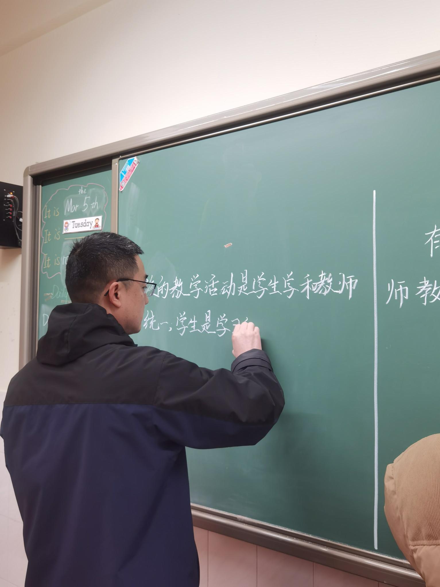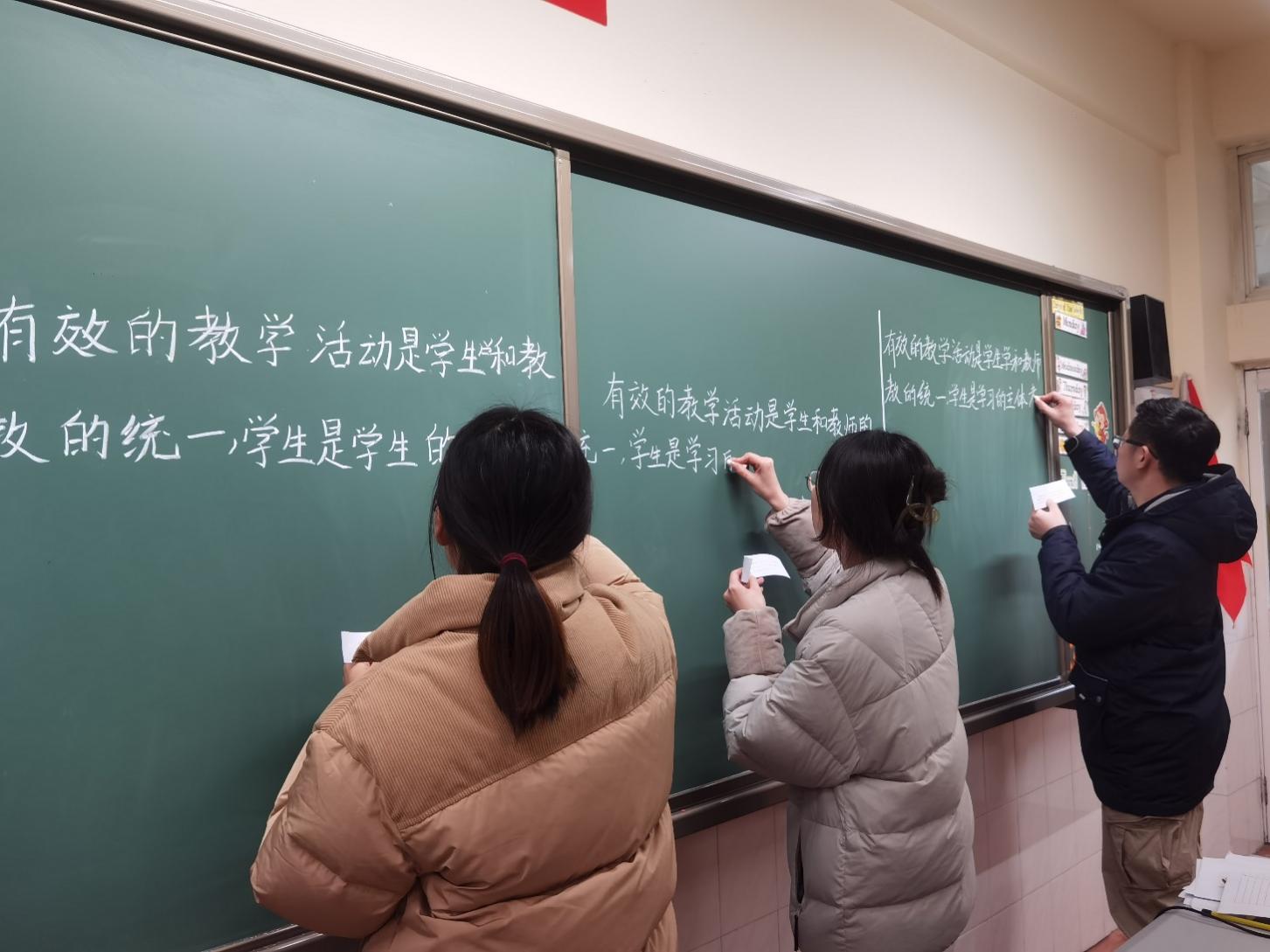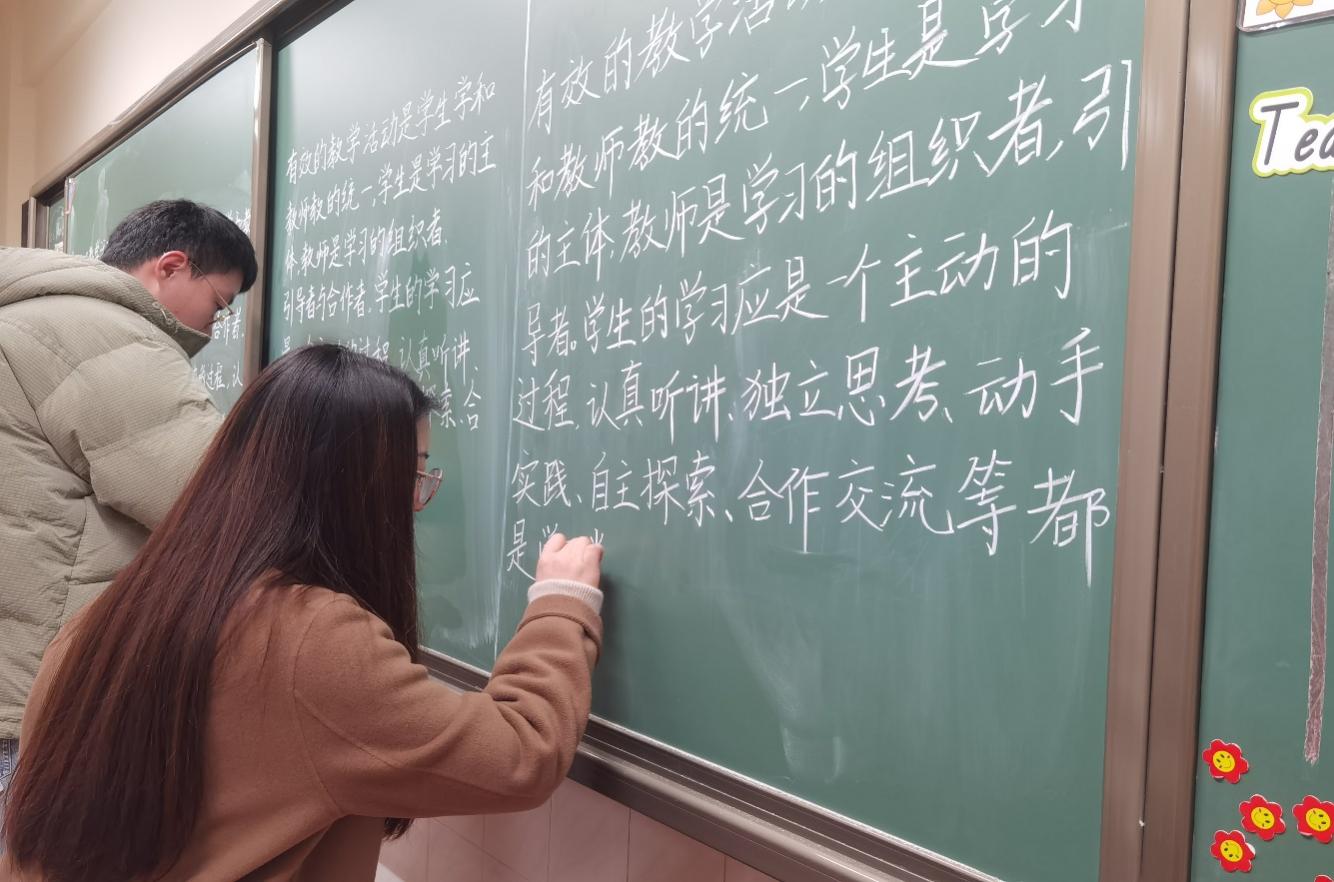 第一輪進(jìn)行的是“粉筆字書寫”比賽,要求在10分鐘之內(nèi)書寫相同的規(guī)定內(nèi)容。粉筆字作為教師的基本技能之一,不僅影響著教師的教學(xué)效果,更是教師形象和素質(zhì)的體現(xiàn)。
