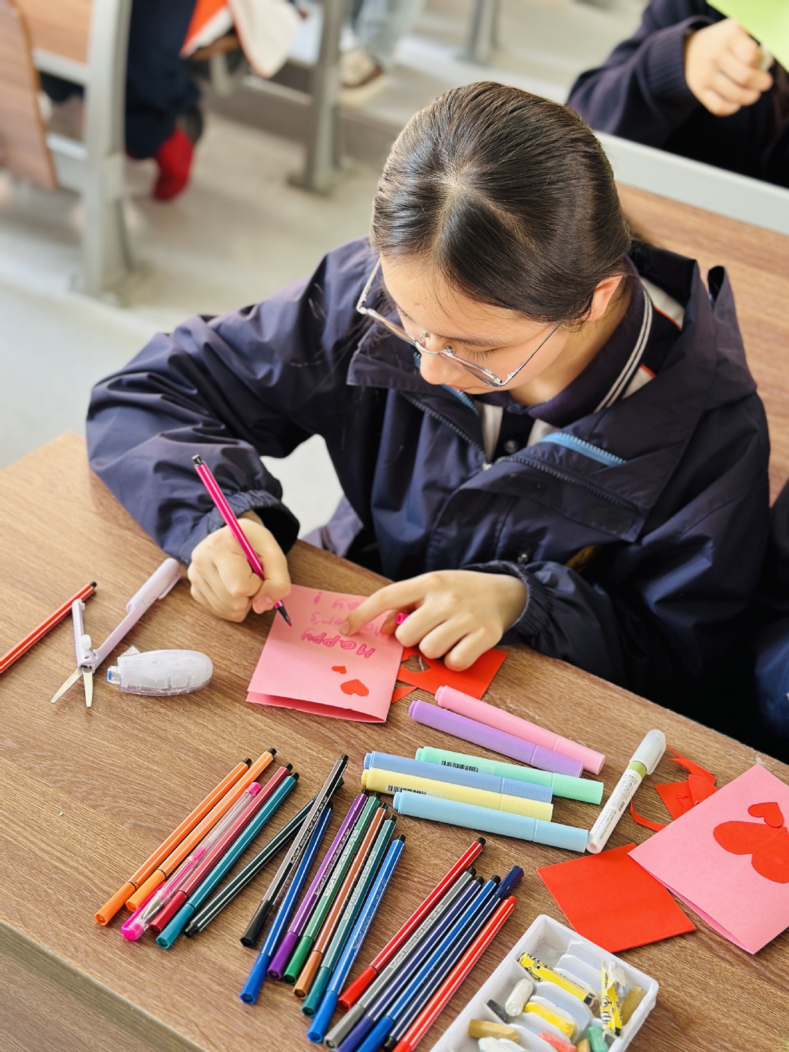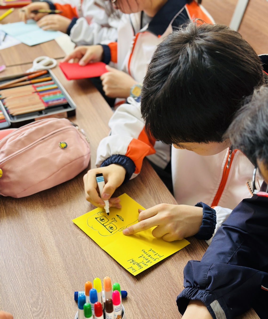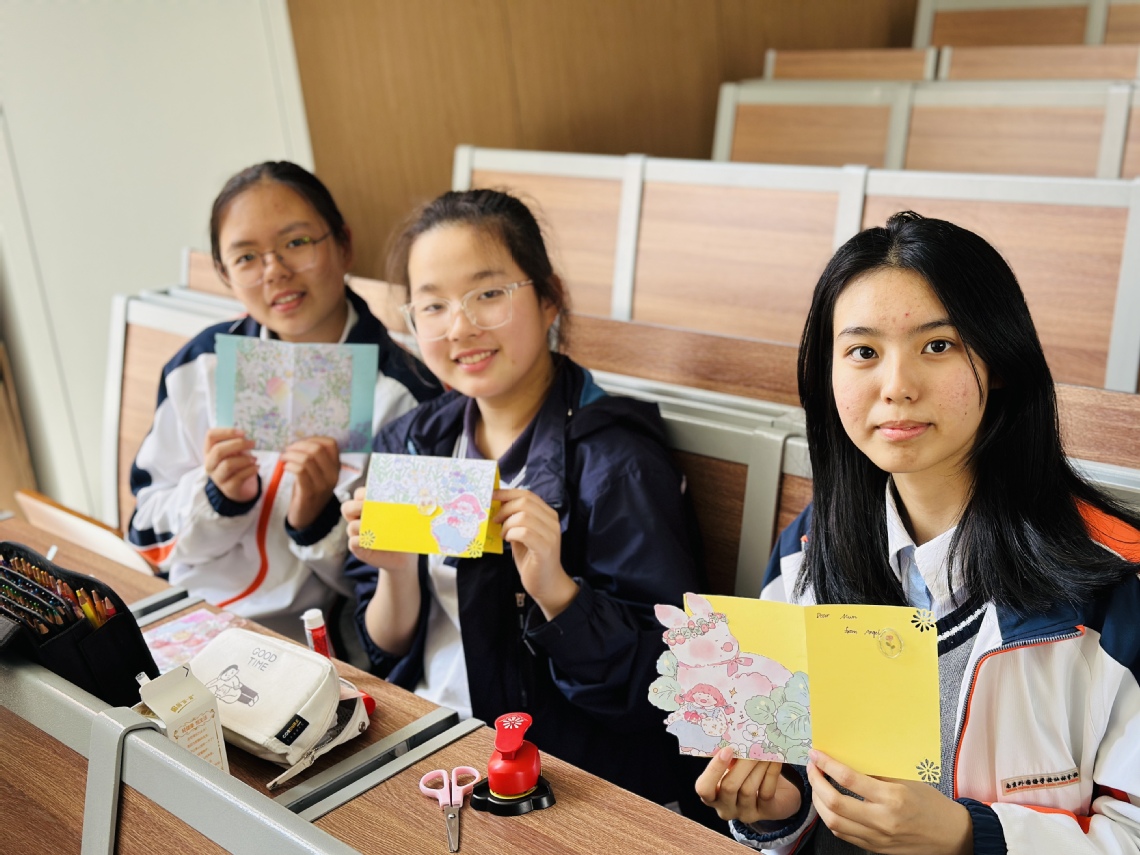 為了迎接5月份即將到來的母親節(jié),培養(yǎng)感恩母愛的良好風尚,同時提高同學們的英語能力。4月18日中午,南外仙林分校中學部的外教組織了以母親節(jié)賀卡制作為主題的外語角活動。