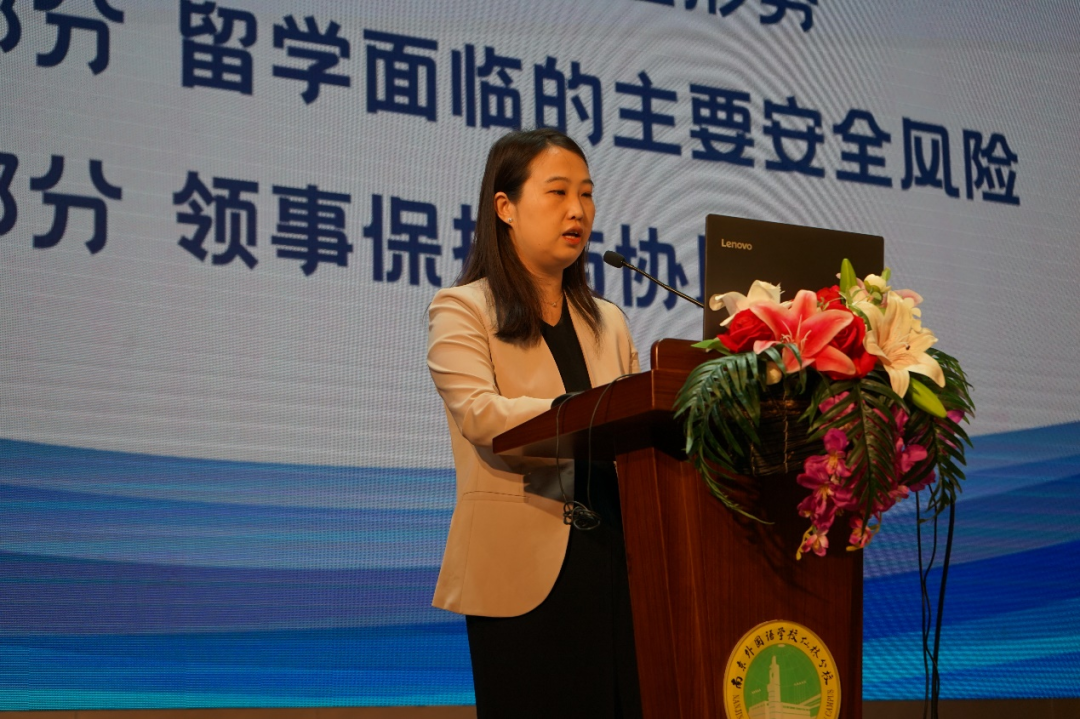 江蘇省人民政府外事辦公室涉外安全處張絢副處長(zhǎng)為大家做了“中國(guó)公民海外安全與領(lǐng)事保護(hù)”的講座。她帶領(lǐng)留學(xué)生們學(xué)習(xí)有關(guān)中國(guó)領(lǐng)事保護(hù)的政策和措施,告訴留學(xué)生們出國(guó)留學(xué)要注意不一樣的交通法規(guī),對(duì)留學(xué)生活所面臨的潛在風(fēng)險(xiǎn)要有合理和科學(xué)的預(yù)期,結(jié)交良友,不要在夜間單獨(dú)行動(dòng),防范政治風(fēng)險(xiǎn),不要卷入他國(guó)的政治事件,授人以柄。祝愿學(xué)子們快樂留學(xué),平安回家!