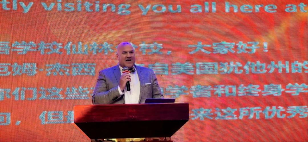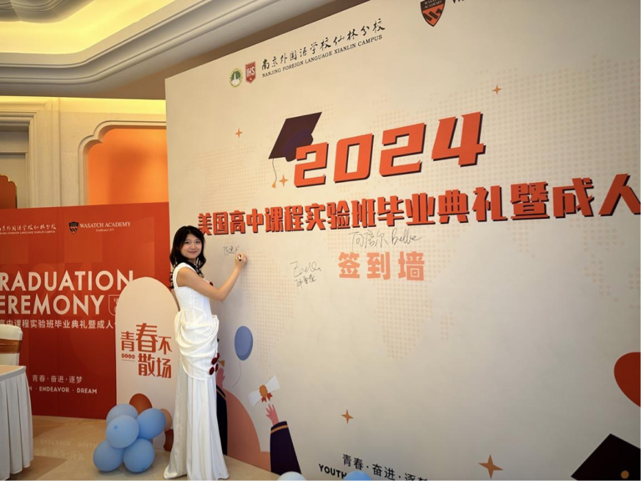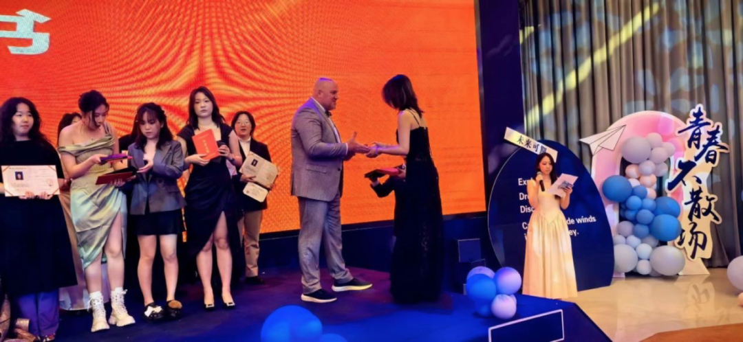 此外,他還特意安排了特別的教師代表團(tuán)隊(duì)為畢業(yè)生送上祝福和鼓勵(lì)的話語(yǔ)。他的用心不僅體現(xiàn)在活動(dòng)流程上,更滲透在每一個(gè)小細(xì)節(jié)之中。無(wú)論是舞臺(tái)布置還是場(chǎng)內(nèi)場(chǎng)外布局都透露出他對(duì)學(xué)生的深厚感情和美好祝愿。可以說(shuō)劉主任既是這次典禮的“總導(dǎo)演”,也是“靈魂人物”,精心設(shè)計(jì)與安排了讓校方、辦學(xué)合作方天霖教育、美國(guó)瓦薩琪高中三方人員傾情為畢業(yè)生們籌備了這場(chǎng)精彩的畢業(yè)典禮,大家用無(wú)限的熱忱為學(xué)生們打造了一個(gè)難忘的告別時(shí)刻,成為了所有畢業(yè)生心中難以磨滅的美好記憶。