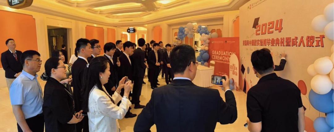 入場(chǎng)前全體畢業(yè)生和老師在簽到墻上留下了他們的簽名并拍照留念,這一刻將成為他們心中珍貴的記憶。