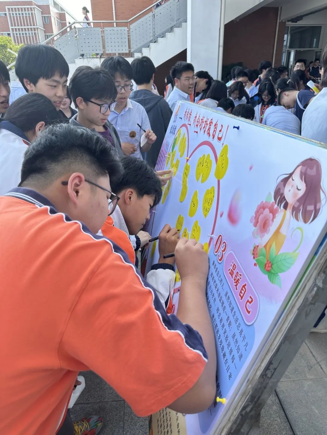 除了身體上的挑戰(zhàn),活動中的心理知識游戲也讓我們受益匪淺。通過回答心理保健知識問題,我們更加了解了如何保持心理健康,為自己和他人提供了寶貴的心理支持。而在“心”簽名活動中,同學(xué)們在簽名墻上寫下對自己的承諾和對他人的祝福,傳遞了溫暖和正能量。