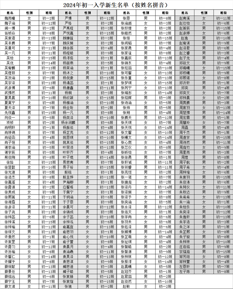 分班流程:按照分班測(cè)試成績(jī),按男女從高分到低分排序,然后分別實(shí)行蛇形排列分成15組,使每組男女人數(shù)均衡,各組均分基本相等,并按拉丁字母A、B、C、D 至 O對(duì)15組進(jìn)行編號(hào)。