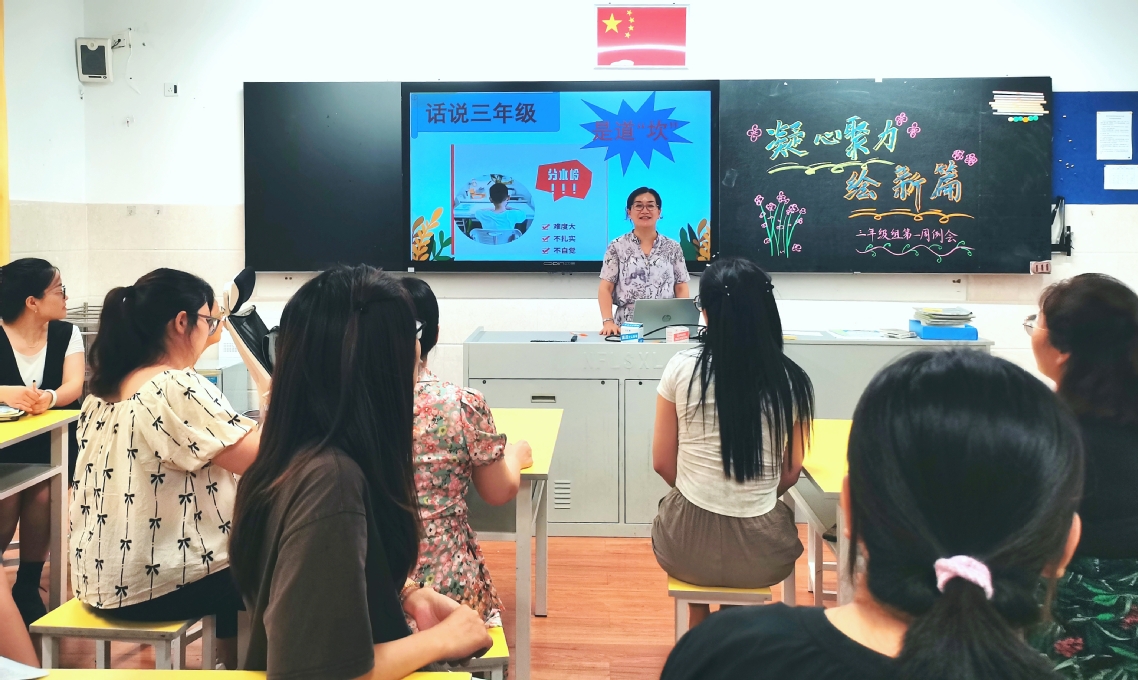 9月2號(hào)下午三年級(jí)組召開(kāi)了第一周年級(jí)組全體教師例會(huì),本次活動(dòng)特邀中段資深班主任崔海霞老師走進(jìn)三年級(jí),為大家?guī)?lái)了題為“二升三”經(jīng)驗(yàn)分享會(huì),崔老師從多角度深入分析了三年級(jí)學(xué)生的心理特點(diǎn),針對(duì)于這些特點(diǎn)又給出了較多的應(yīng)多策略,同時(shí)對(duì)于語(yǔ)文學(xué)科教學(xué)給與了針對(duì)性的指導(dǎo),干貨滿(mǎn)滿(mǎn),老師們聽(tīng)得津津有味。
