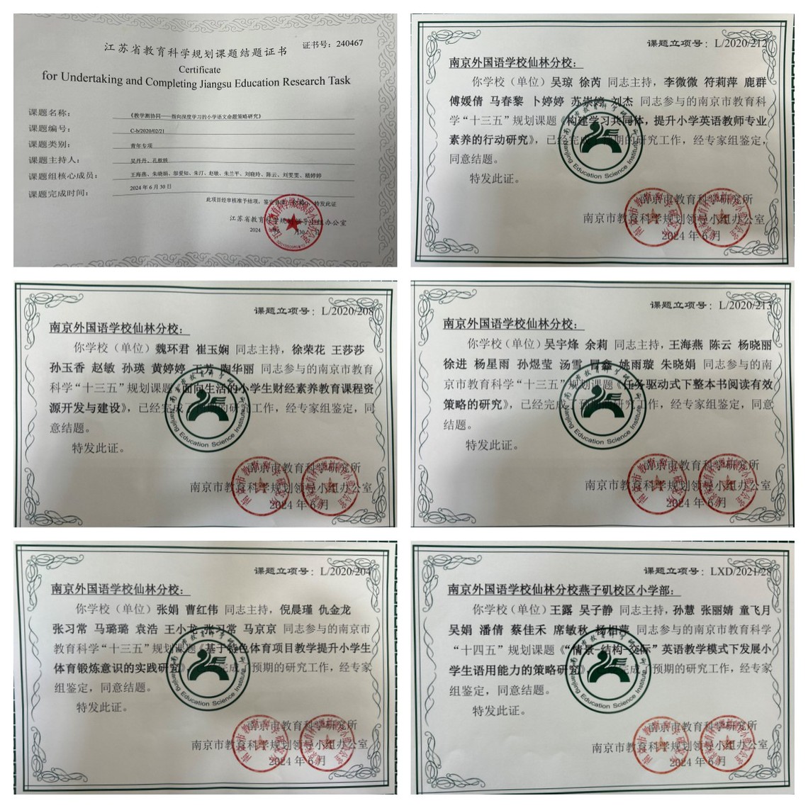 經(jīng)江蘇省教育科學(xué)規(guī)劃領(lǐng)導(dǎo)小組辦公室,南京市教育科學(xué)研究所,南京市教育科學(xué)規(guī)劃領(lǐng)導(dǎo)小組辦公室會評審,我校6個課題順利結(jié)題并獲得結(jié)題證書。具體名單如下: