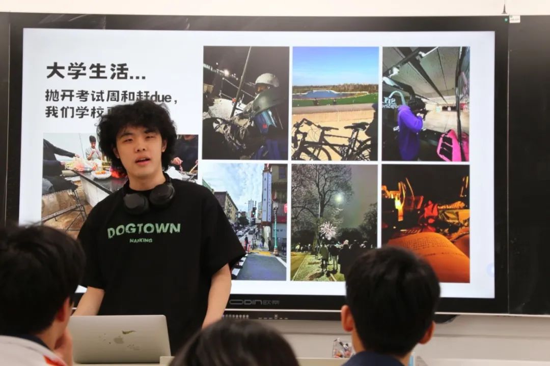 2024年5月23日,現(xiàn)就讀于美國優(yōu)秀大學(xué)的原國際高中中美項(xiàng)目學(xué)生回到母校,分享了他們的留學(xué)經(jīng)歷。五位2020級的優(yōu)秀畢業(yè)生回到母校,他們分別是洪雷懿、陳正陽、蘇翎杰、涂芳菲和史笑。他們的分享既充滿實(shí)用的干貨,又飽含對母校的深情厚誼。五位學(xué)姐學(xué)長從申請材料、大學(xué)學(xué)術(shù)和大學(xué)生活三個方面詳細(xì)分享了他們的經(jīng)歷。分享環(huán)節(jié)結(jié)束后,還特設(shè)提問環(huán)節(jié),學(xué)生們就高中學(xué)業(yè)要求、美國社會生活、娛樂休閑等話題踴躍提問。在這次精心準(zhǔn)備的經(jīng)驗(yàn)分享會上,同學(xué)們對申請美國大學(xué)、學(xué)術(shù)體系和生活指導(dǎo)的有了更深刻的了解。在未來的學(xué)術(shù)追求中,學(xué)生們不僅注重提高自己的學(xué)術(shù)能力,而且注重探索自己的綜合自我能力和獨(dú)特的個性。