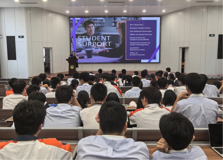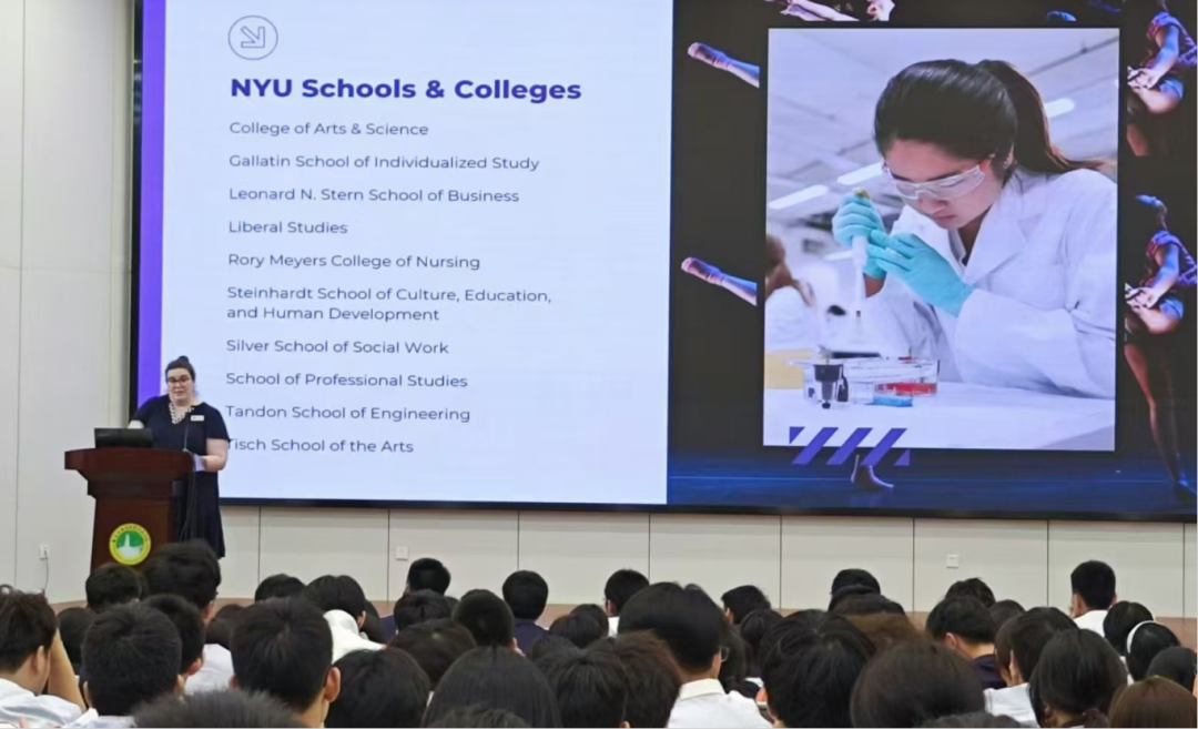 與教師們交流結(jié)束后,Halstead女士通過介紹紐約大學的強勢專業(yè)、解答最新的招生政策、資訊分享和答疑互動的方式,為全體中美課程班的同學們帶來了一場精彩而詳實的現(xiàn)場宣講。