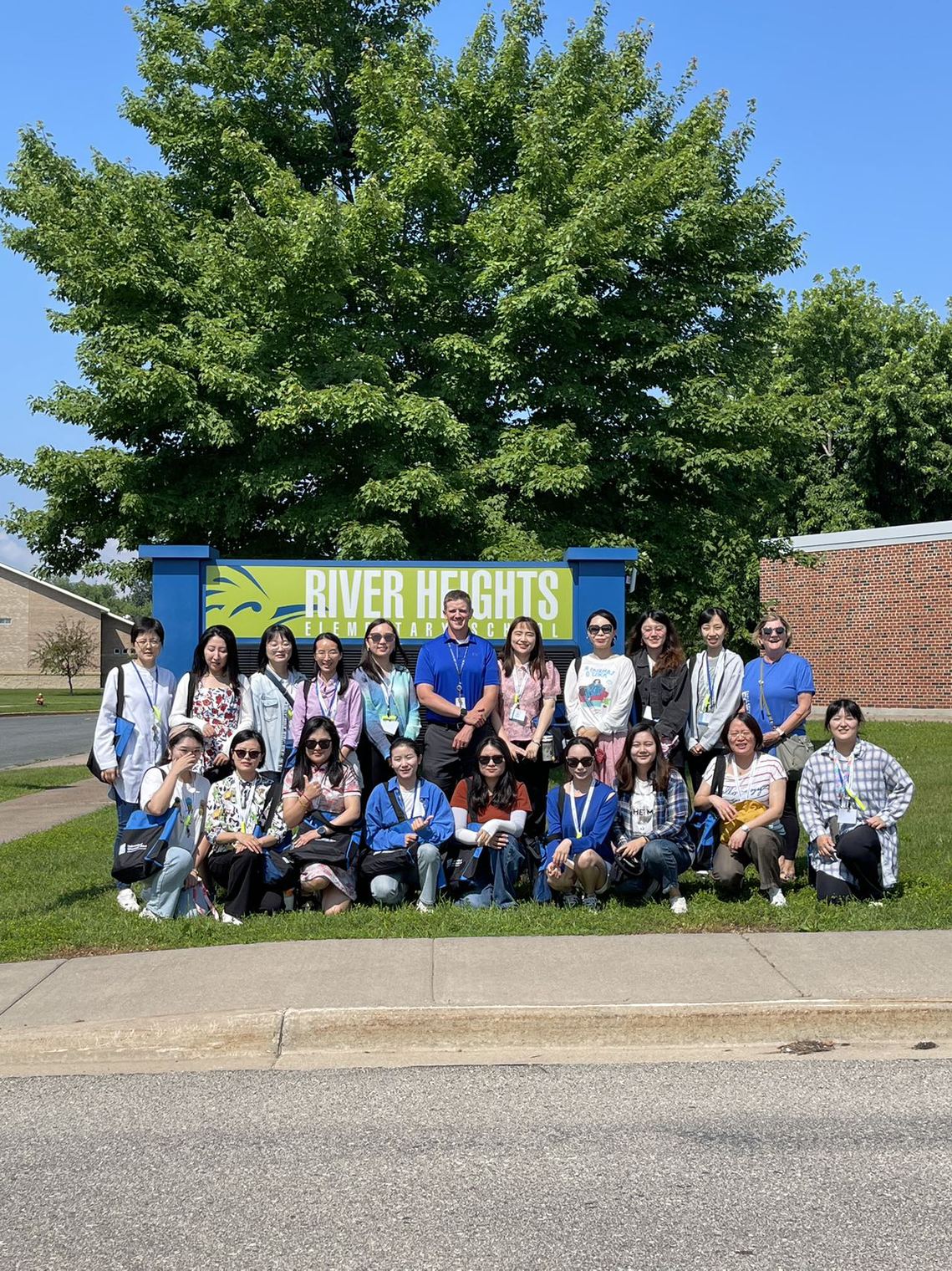 美國是一個移民國家,美國社會努力接納和尊重不同文化、宗教和種族背景的人們,由此發(fā)展出其獨特的多元價值觀。例如,我們拜訪參觀的當?shù)匦W中,就有來自多個國家的非英語母語學生,老師在日常教學時便鼓勵學生互相分享自己民族文化活動。我們一位尼泊爾裔美國教授Sapna,帶領我們對二語學習與母語的相關性進行思考,并且指出培養(yǎng)學生發(fā)展Bilingual brains是二語教學中重要的一環(huán)。語言與其背后蘊含的文化及民族認同是無法分割的。我們學習英語是為了培養(yǎng)多元思維,同時更要在全球化的大背景下,讓學生有能力用英語傳遞中國文化,這與新教材的編寫思路不謀而合。正因為美國的社會文化多樣豐富,美國文化強調(diào)個人自由、個人權利和個人成就,鼓勵個人表達和追求個人目標。這也啟發(fā)我們教師在課堂上尊重學生個體,啟發(fā)學生個性發(fā)展,針對學生各自的學習特點設置學習任務。