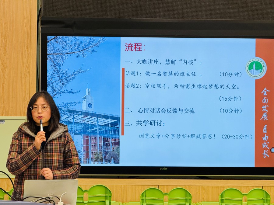 “誕”愿平安,溫暖相伴,在平安夜美妙的祝福曲中,帶著對班主任工作的熱愛,三四年級班主任們齊聚一堂,開展了一場主題為“抓住“內(nèi)核”促發(fā)展 “慧”做班主育成長!”的中年級班主任研修活動。