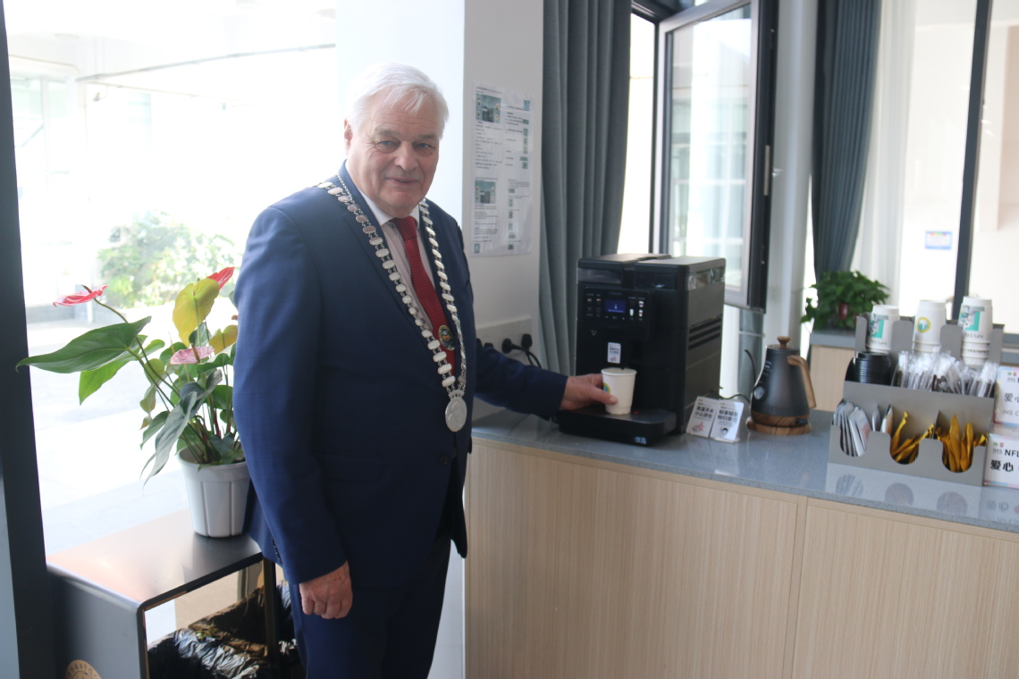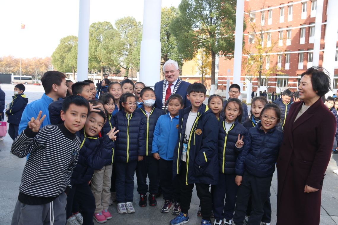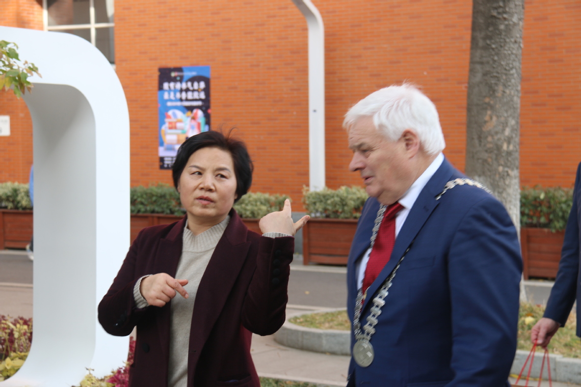 走進仙林,感知仙林,品味仙林??らL一行先后參觀了各個學(xué)部的教學(xué)樓、音樂臺、室外體育場等教學(xué)場地。參觀途中,熱情可愛的小學(xué)生們自信大方的用英語和外賓們打招呼;體育場上,青春洋溢的高中生們邀請盧局長和奧弗林郡長一展身手,無不展現(xiàn)了我校學(xué)生的風(fēng)采,也給訪問團外賓及市領(lǐng)導(dǎo)留下了深刻的印象。隨后在學(xué)校的咖啡廳,市教育局盧局長及戰(zhàn)處長與郡長進行深入交流,雙方介紹了兩地教育理念、學(xué)校規(guī)模及學(xué)制等信息。盧局長表示進一步推動中愛教育交流與合作,實現(xiàn)高質(zhì)量發(fā)展,是學(xué)校教育國際化建設(shè)需要探索的命題。