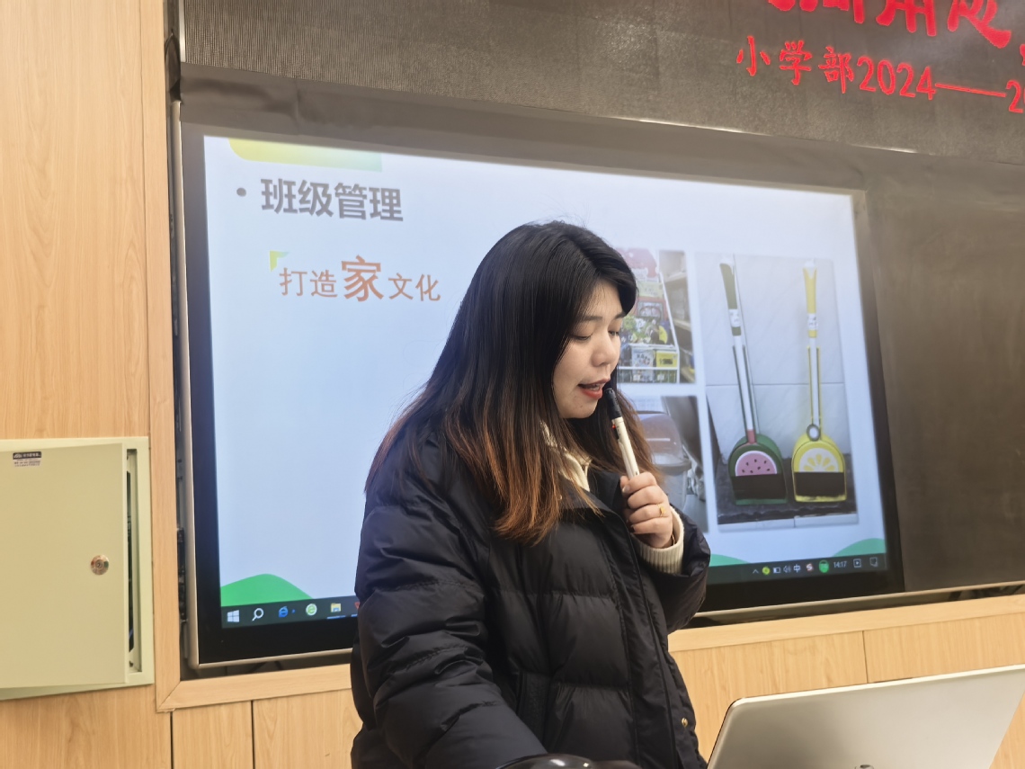 接著,一年級的于玲玉老師帶來了《心平氣和的一年級》主題講座。于老師從 “班級管理” 和 “家校溝通” 兩個方面,分享了如何構建一個健康的班級生態(tài)圈。于老師的班級管理方法實用有效,營造出積極溫馨的班級文化氛圍;在家校溝通方面,她真誠且富有藝術性,溝通內(nèi)容針對性強,贏得了家長的支持和認可。于老師娓娓道來的講述背后,飽含著對孩子的愛心、慧心和責任心,也引發(fā)了班主任們的強烈共鳴。雖然我們的教育工作或許沒有驚天動地的成就,有時甚至不被他人理解,但學生們那一雙雙明亮的眼睛,一句句溫暖的問候,早已讓我們的努力與堅守變得無比珍貴。