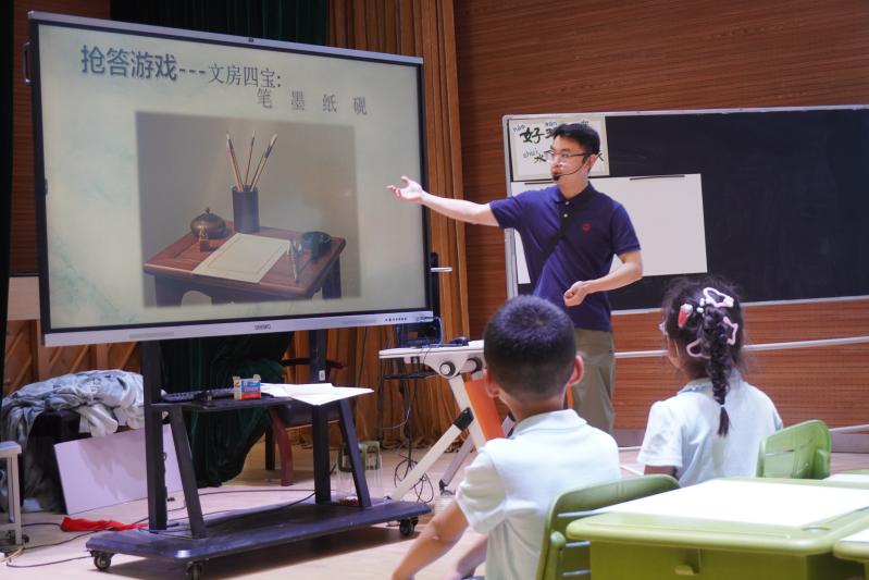 教學(xué)展示的第二部分《好玩的水墨游戲》單元,則分別由來自我校小學(xué)部的陳智鵬、陳春萌兩位老師擔(dān)任主教。