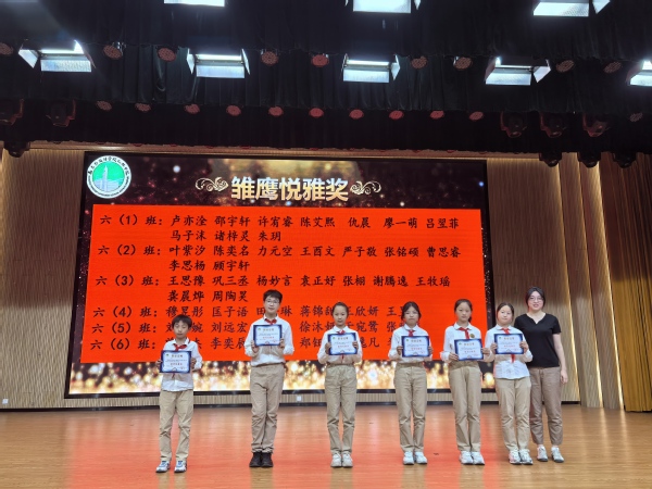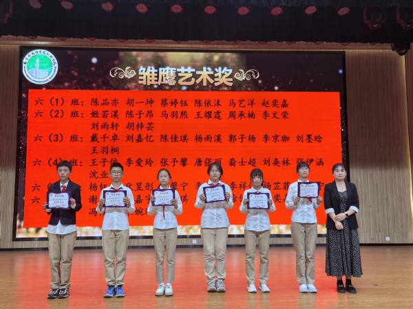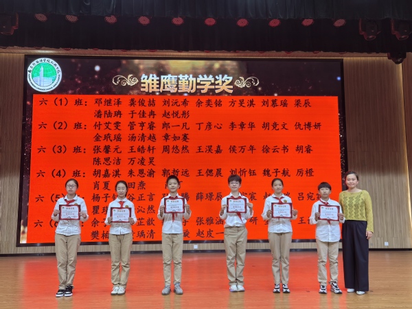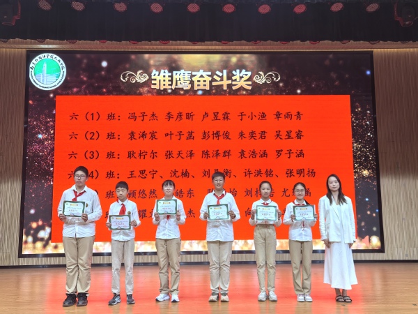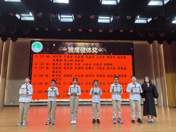 會(huì)議首先對(duì)獲得雛鷹悅雅獎(jiǎng)、雛鷹勤學(xué)獎(jiǎng)、雛鷹健體獎(jiǎng)、雛鷹藝術(shù)家、雛鷹勞動(dòng)獎(jiǎng)和拼搏奮斗獎(jiǎng)的同學(xué)進(jìn)行表彰。