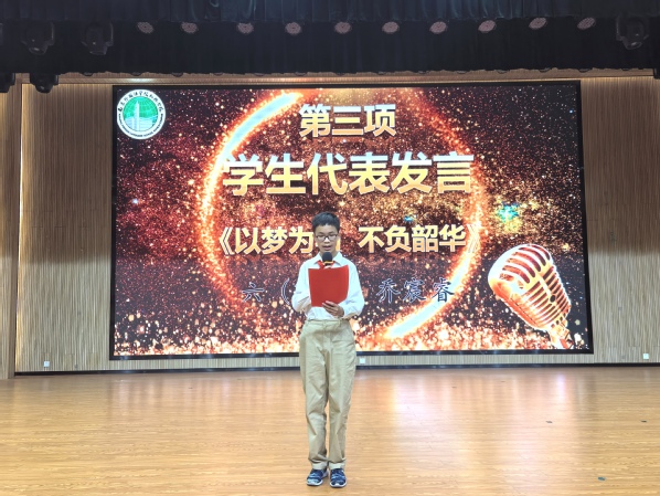 表彰結(jié)束之后,六(1)班喬宸睿跟大家分享了自己實(shí)現(xiàn)夢(mèng)想的做法,他的發(fā)言不僅是經(jīng)驗(yàn)的分享,更是一種力量的傳遞,希望每位同學(xué)都能“以夢(mèng)為馬,不負(fù)韶華”。