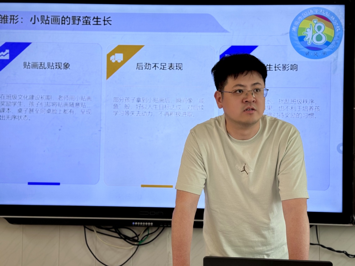 陳琛老師以 “愛心育苗,小目標(biāo)成就大成長(zhǎng)” 為主題,用 “成長(zhǎng)護(hù)照” 記錄學(xué)生進(jìn)步,集印章解鎖榮譽(yù)崗位,助學(xué)生養(yǎng)成自律習(xí)慣。徐進(jìn)老師聚焦家校共育,提出 “教育能量站”,辦 “家長(zhǎng)沙龍”、建線上資源庫(kù),凝聚家校合力,搭家校溝通橋梁。羅學(xué)潮老師分享內(nèi)向?qū)W生蛻變故事,借 “班級(jí)故事角”“智慧錦囊” 等創(chuàng)新做法,讓學(xué)生在班級(jí)文化浸潤(rùn)中成長(zhǎng)。