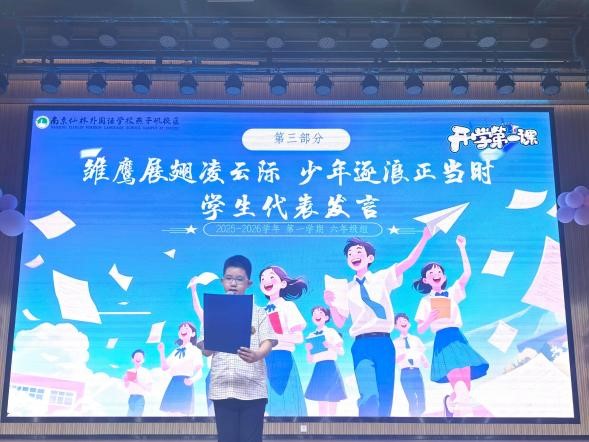 新學期伊始,為助力六年級學子以最佳狀態(tài)迎接小升初沖刺,南京仙林外國語學校燕子磯校區(qū)小學部六年級于 9 月 4 日中午召開“雛鷹展翅凌云際 少年逐浪正當時”開學第一課動員大會。六年級全體師生齊聚劇場,在莊重而熱烈的氛圍中,共同開啟新學期的奮斗篇章。