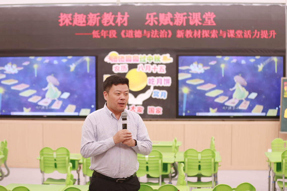 課后研討環(huán)節(jié),棲霞區(qū)道德與法治學(xué)科帶頭人崔玉嫻老師結(jié)合<<道德與法治>>教學(xué)新課改方向進行了點評:“丁潔老師重難點把握得很準(zhǔn)。引導(dǎo)學(xué)生了解中秋節(jié)的文化內(nèi)涵,體會中秋節(jié)的團圓意義,并學(xué)會通過傳統(tǒng)的文化儀式來慶祝節(jié)日,做中華傳統(tǒng)文化的踐行者。這是因為本課的核心價值在于通過節(jié)日載體,落實‘政治認(rèn)同'、‘道德修養(yǎng)'等核心素養(yǎng)。”朱曉慶老師從教學(xué)實施方面點評道: “課堂活動豐富多樣,有小組合作探究習(xí)俗、古詩吟唱、視頻觀看、互動問答等,涵蓋了聽、說、思、做等多種形式,充分調(diào)動學(xué)生的參與熱情,讓學(xué)生在多樣活動中主動探索中秋文化,提升了學(xué)習(xí)的主動性與有效性。”狄慧老師從學(xué)生反饋方面進行點評: “這堂課的亮點很多,多到讓我覺得它超越了傳統(tǒng)的道德課,是一節(jié)以學(xué)生為主體、在生動情境中實現(xiàn)育人目標(biāo)的優(yōu)秀示范課?!?/span>任志剛校長在總結(jié)中強調(diào),要“扎扎實實上好每一節(jié)道法課”,真正實現(xiàn)從“教知識”到“育素養(yǎng)”的轉(zhuǎn)變。