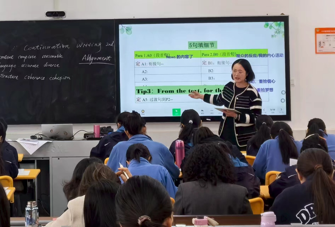 在高一英語(yǔ)讀后續(xù)寫(xiě)教學(xué)中,如何引導(dǎo)學(xué)生從“讀懂故事”邁向“寫(xiě)出精彩”,是教學(xué)的關(guān)鍵挑戰(zhàn)。11月3日,我校高一英語(yǔ)組就這個(gè)課題向全區(qū)開(kāi)展一次研討。從第一部分的讀寫(xiě)到第二部分的修改打磨,江亞平老師和張倩老師通過(guò)系統(tǒng)化的“協(xié)同”理念,實(shí)現(xiàn)了學(xué)生從思維建構(gòu)到語(yǔ)言落地的能力跨越,得到了與會(huì)老師的一致好評(píng)。