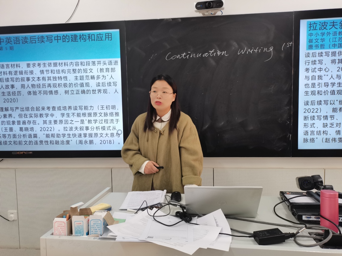課后,燕子磯中學(xué)王翠開(kāi)設(shè)讀后續(xù)寫(xiě)課堂教學(xué)策略研究的講座。區(qū)各校代表給出了積極反饋,分享聽(tīng)課的感受。最后,張鴻玲老師指出高一階段的讀后續(xù)寫(xiě)教學(xué)至關(guān)重要,是學(xué)生從“形式”到“內(nèi)涵”、從“語(yǔ)言”到“思維”的深度學(xué)習(xí)。教師要把握好課堂,引導(dǎo)學(xué)生在寫(xiě)作中實(shí)現(xiàn)思維與語(yǔ)言的雙重成長(zhǎng),真正幫助學(xué)生寫(xiě)出“情通理達(dá)、言之有物”的續(xù)寫(xiě)作品。