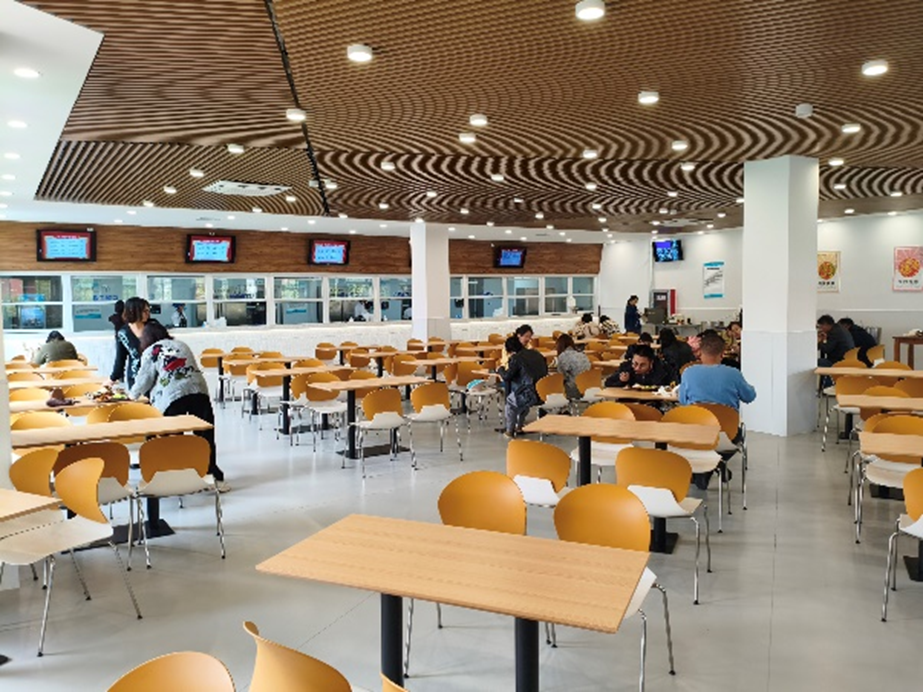 The third floor is for staff and teachers, but students can also get their food there. There are less options for food and the food service is like the traditional cafeteria “l(fā)ine” where your tray moves down the line as you choose what you want to eat. They recently added a noodle station that students seem to enjoy. The school recently remodeled the roof on the third floor with tables and umbrellas for the warmer seasons.