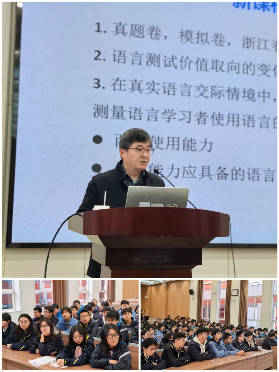11月27日,為助力高三學(xué)子精準(zhǔn)把握新高考英語寫作要求、提升寫作能力,高中英語教研組特邀南京市教研室高中英語教研員邢文駿老師,為全體高三學(xué)生開設(shè)“英語寫作專項指導(dǎo)”講座?,F(xiàn)場互動頻繁、氣氛熱烈,同學(xué)們收獲滿滿。